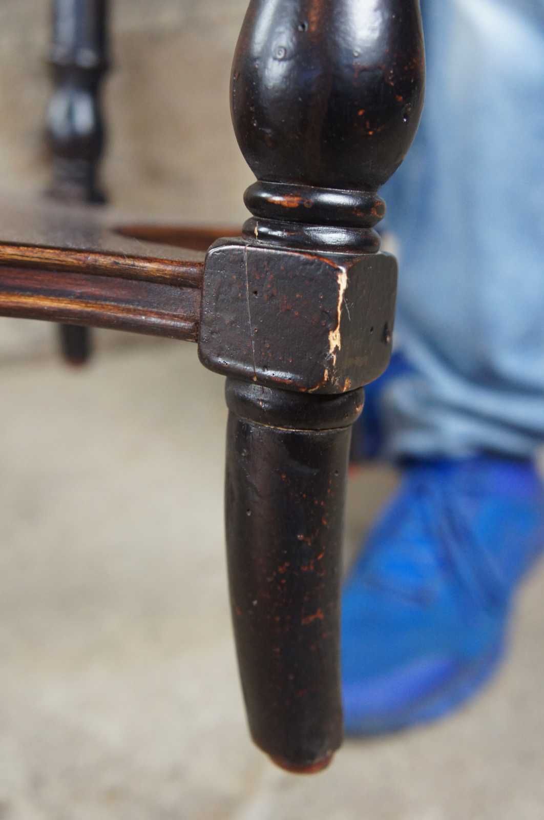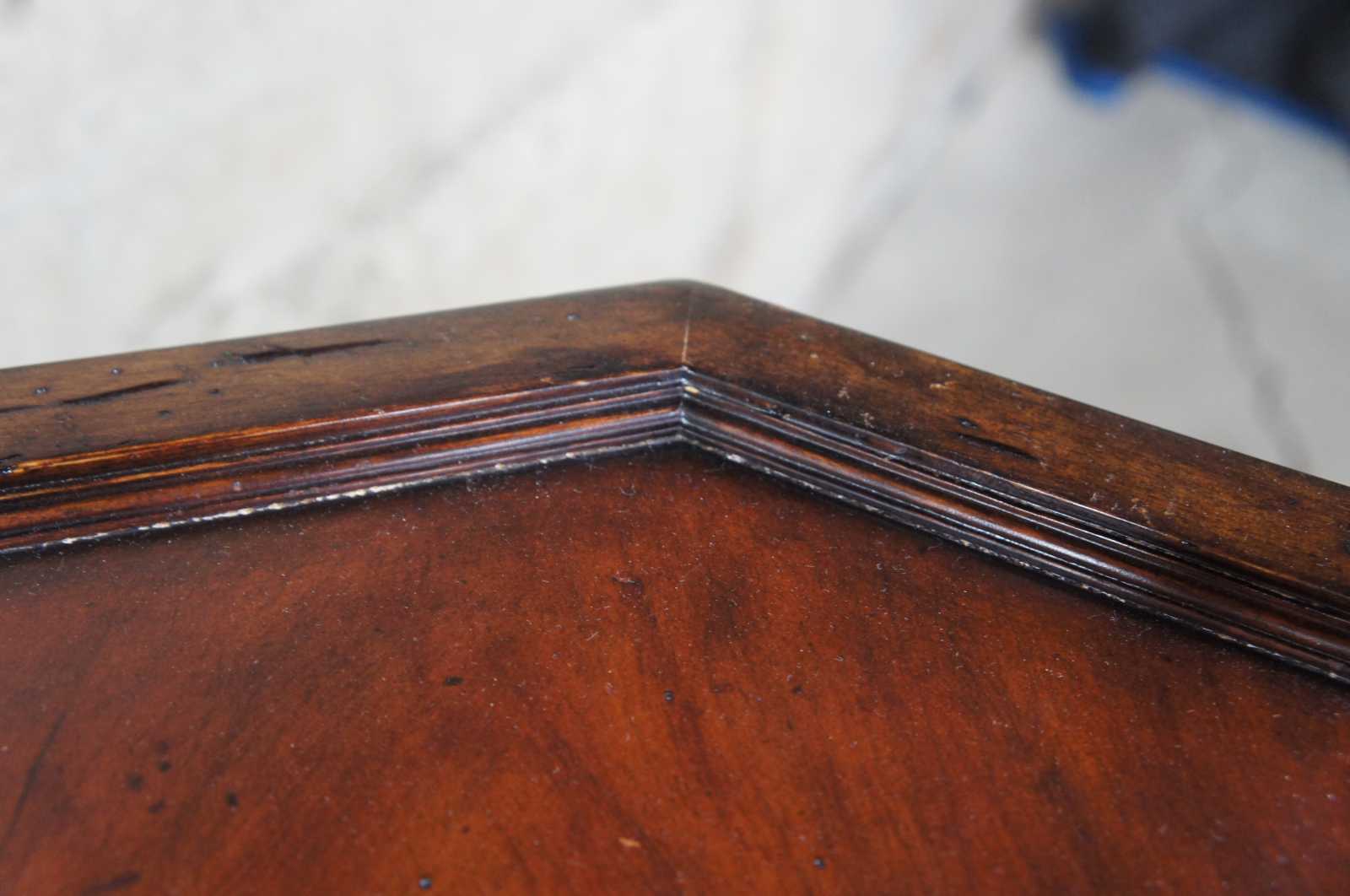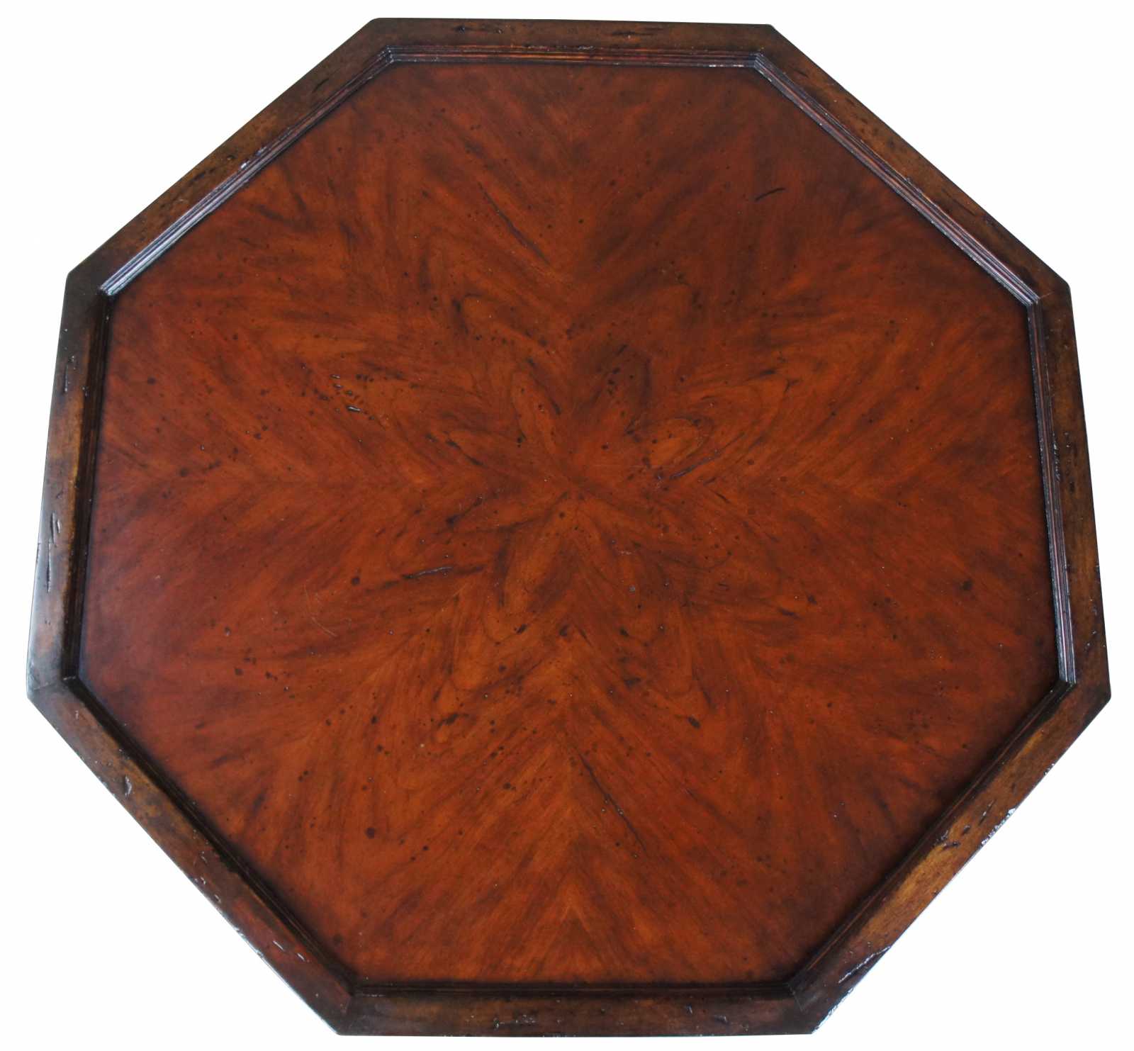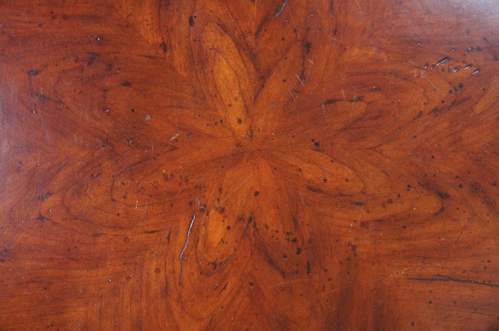 Late 20th century Theodore Alexander two tiered table. Features a matchbook veneered inset top over eight ebonized legs and lower spider web shaped shelf.