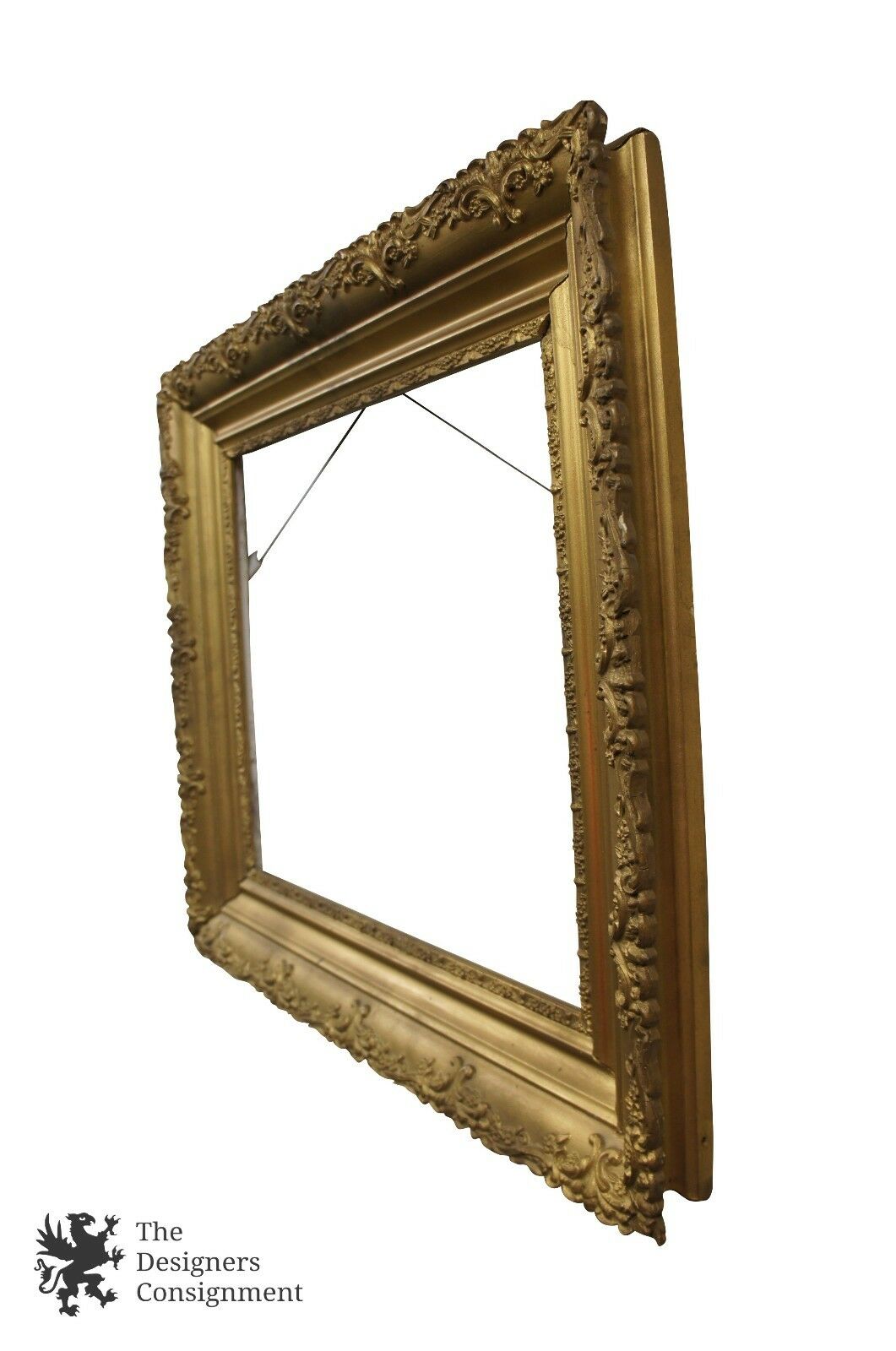 A beautiful early 20th century antique giltwood frame with an ornate floral raised trim. The perfect compliment to any painting.