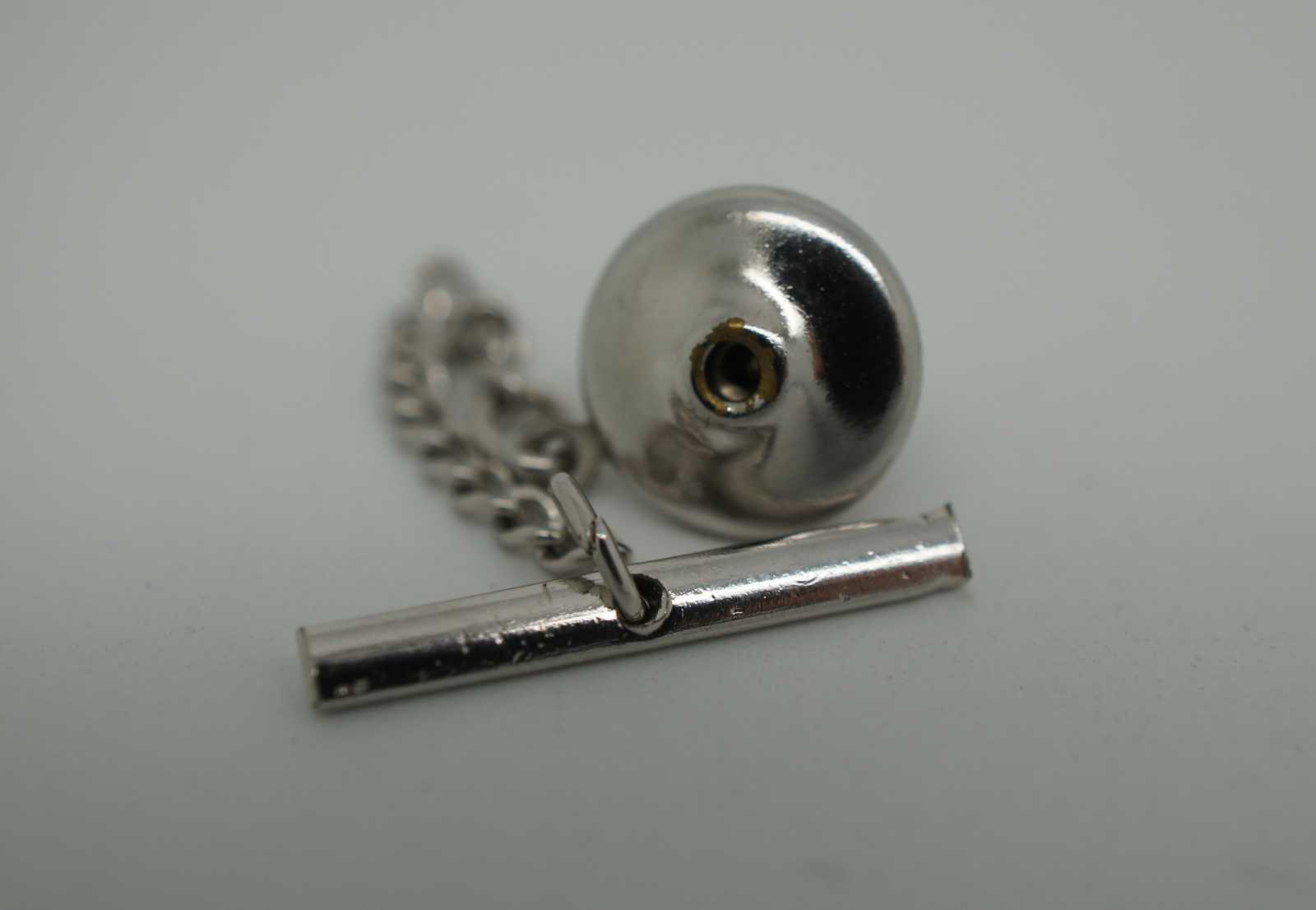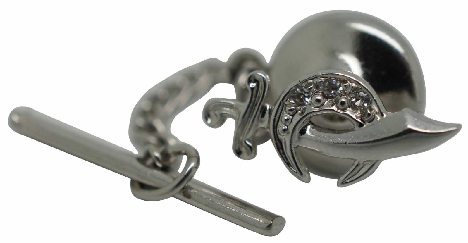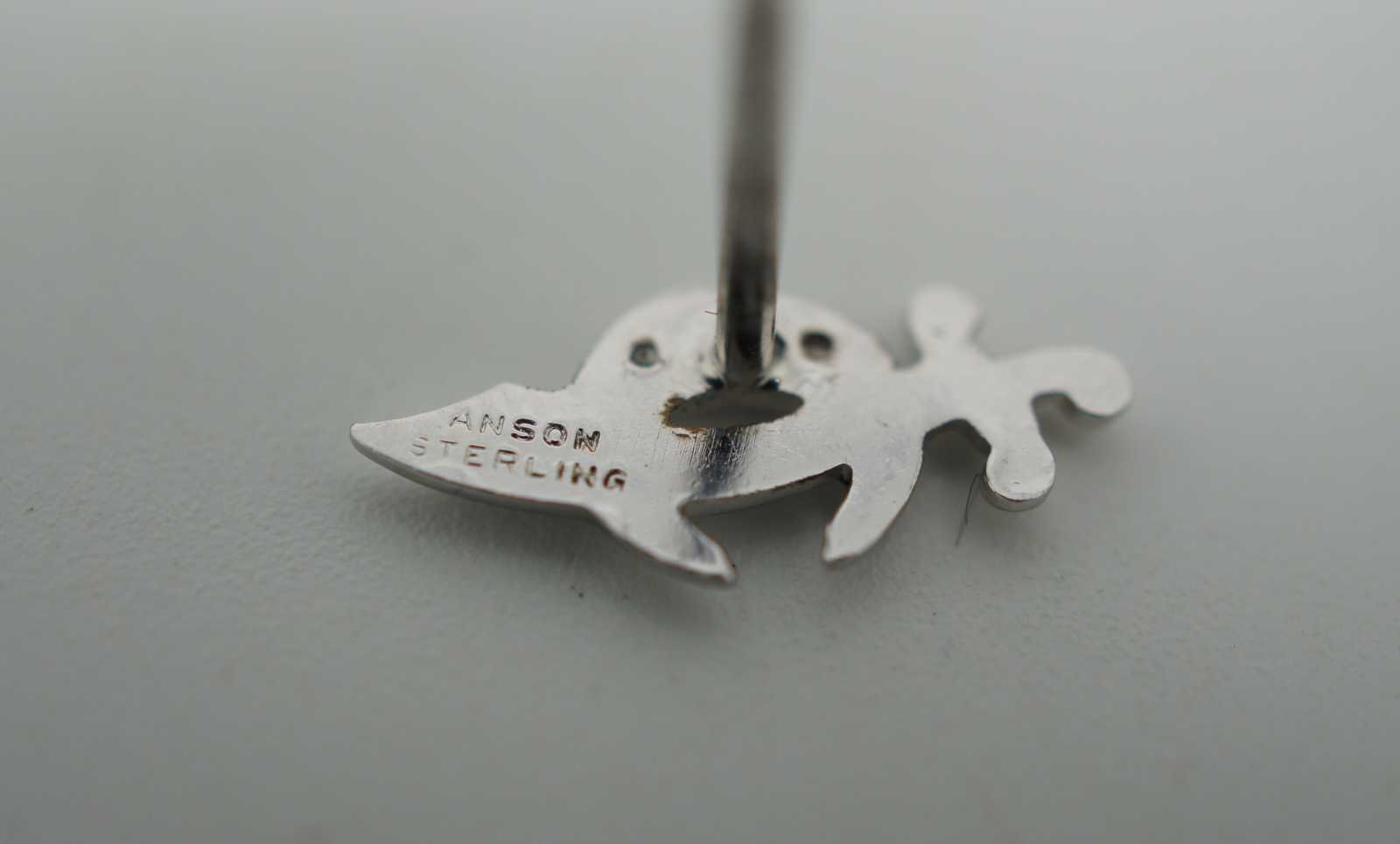 Vintage Anson sterling Masonic/Freemason/Shriner scimitar and crescent moon locking back lapel pin/tie tac with three white rhinestones.