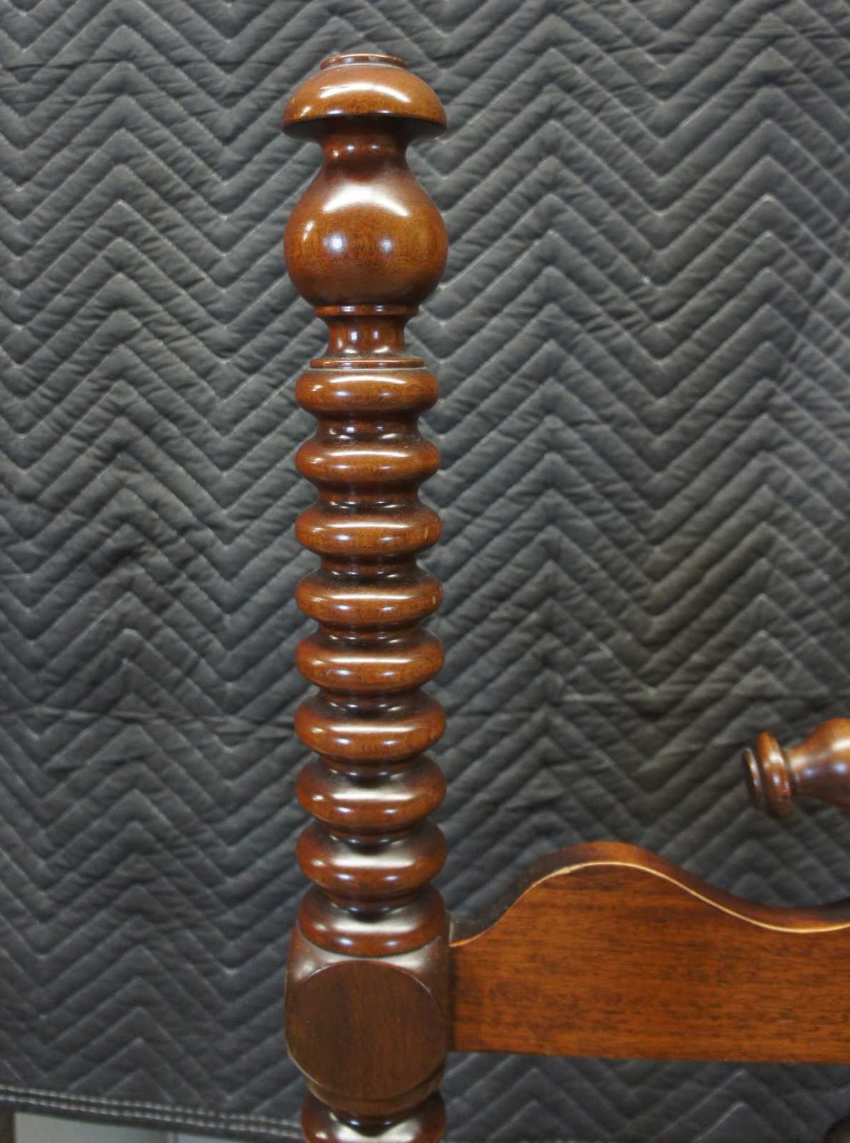 Early 1900s American walnut Jenny Lind / Federal style full size bed. Features ribbed / spooled spindles and posts.