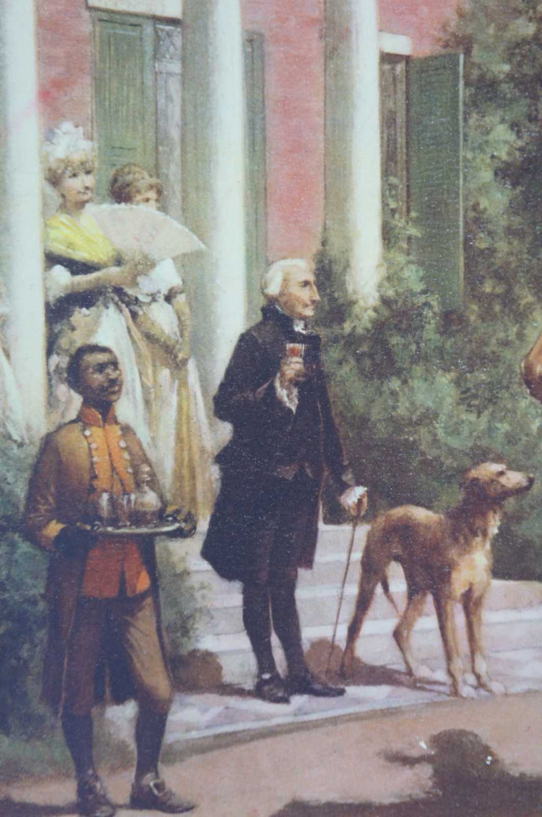 1939 lithograph print the “The Departing Guests” by Wordsworth Thompson, printed in the USA by the New York Graphic Society, courtesy of the New York Historical Society. The number 9538 is at the top right corner of the print. / History painter Alfred Wordsworth Thompson was born in 1840 in Baltimore, studying at Newton University. By the time of the Civil War, Thompson was an artist for the Illustrated London News and Harper's Weekly, interested in events in Virginia. But his interest was apparently not very strong, for, in 1861, he went to Paris to study art, eventually at the Ecole des Beaux Arts in 1864, exhibiting at the Salon of 1865.