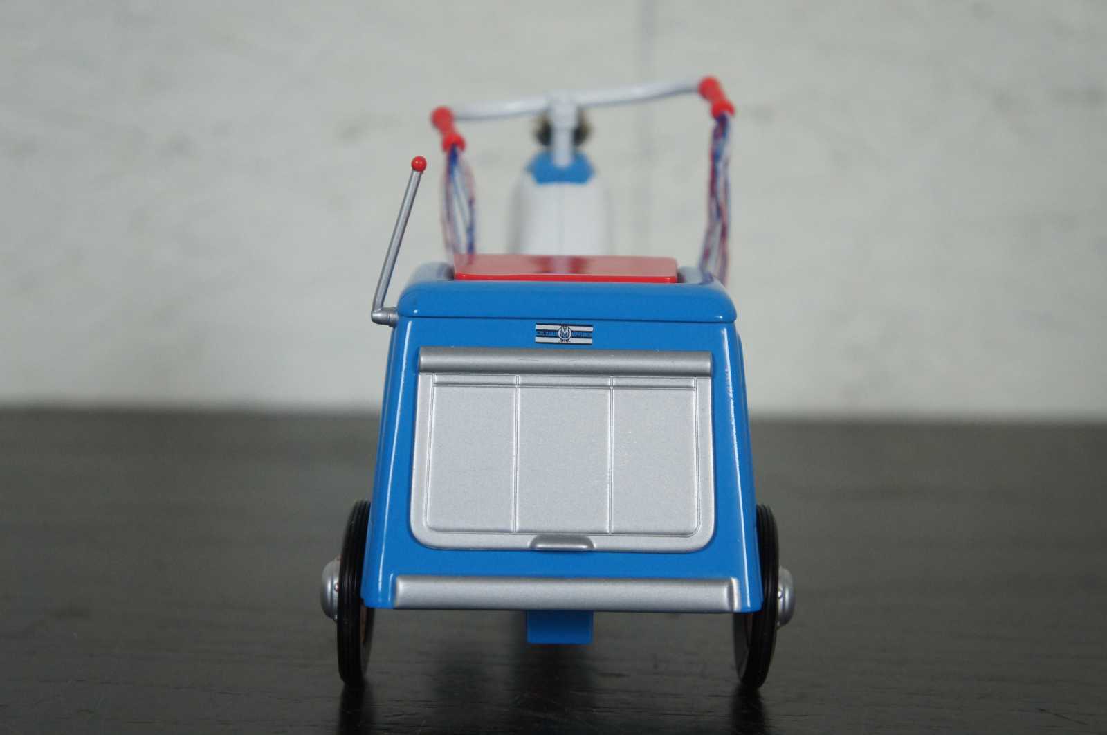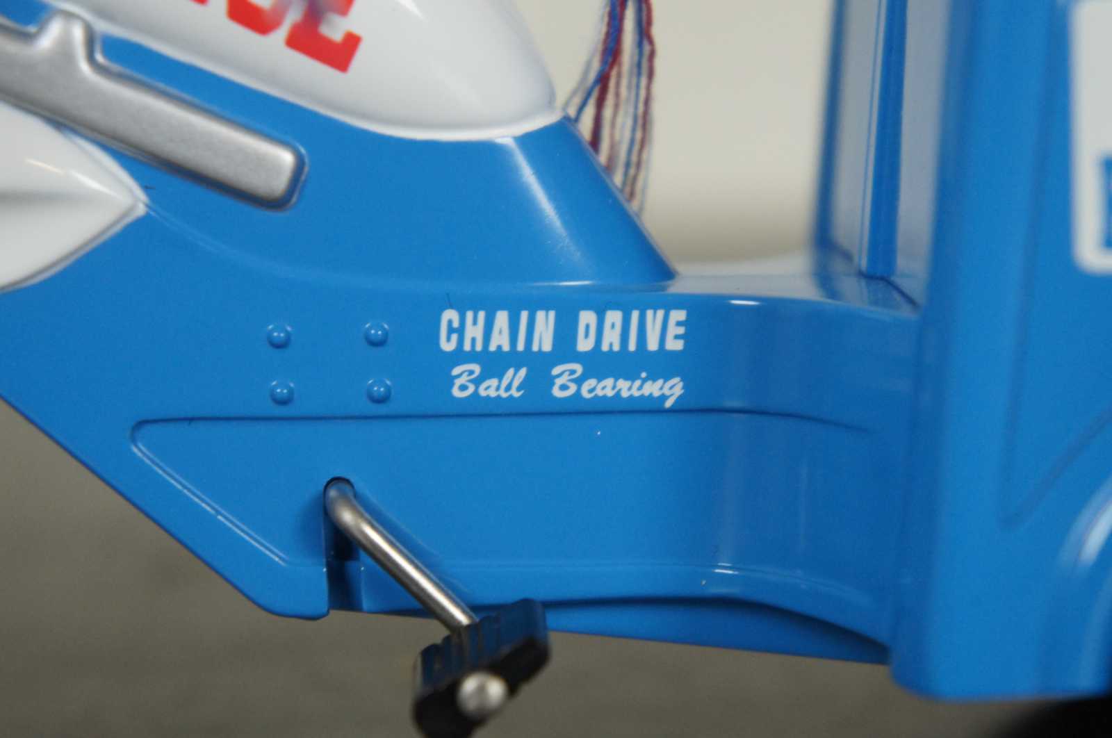 1958 Murray Police Cycle from Hallmark’s Kiddie Car Classics Sidewalk Cruisers Collection, 1995. Includes certificate of authenticity, instructions and original packaging. Batteries shown are included as reference for replacement – they are original to box and no longer good.