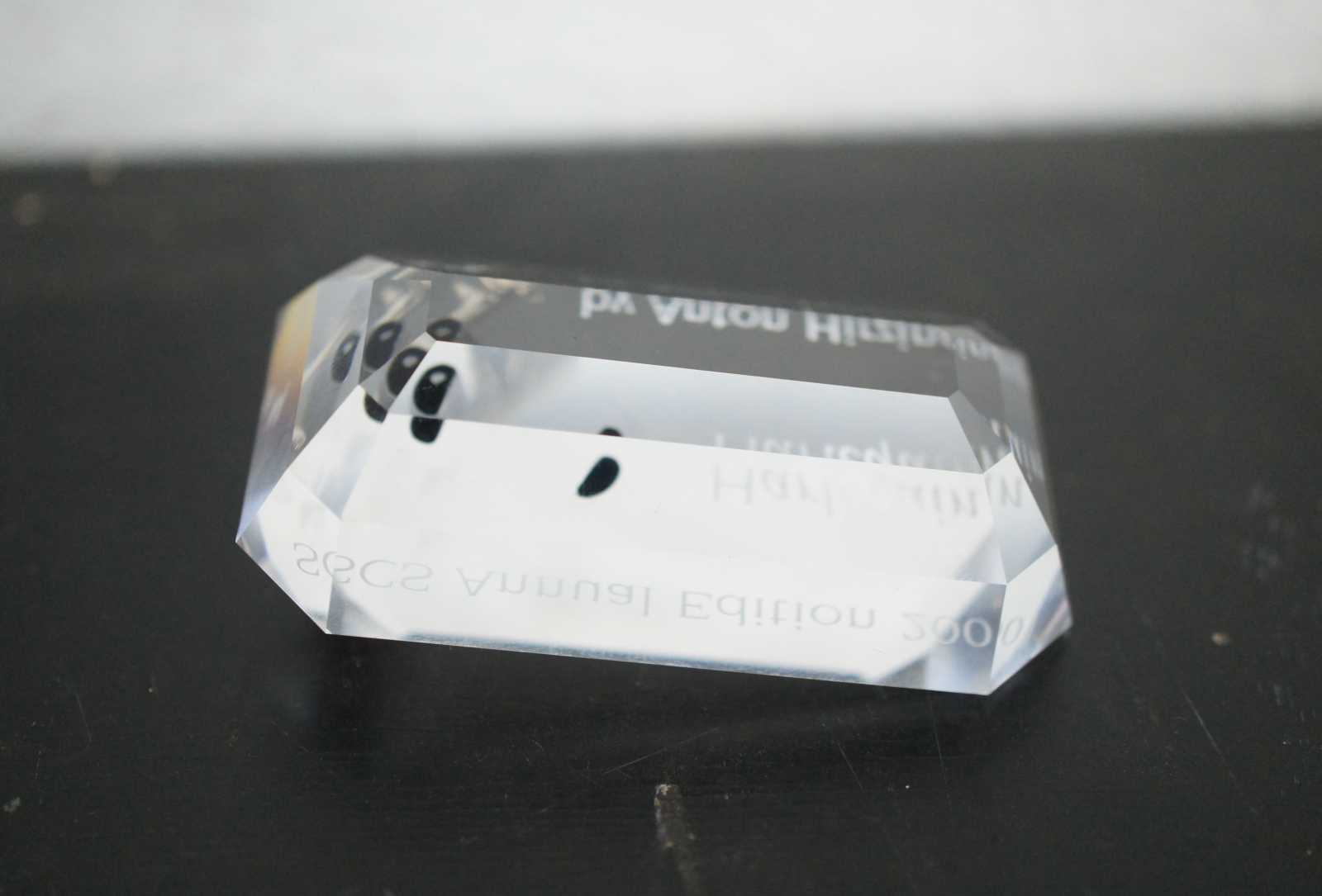 Swarovski SCS Annual Edition 2001 crystal plaque for the Masquerade figure Harlequin by Anton Hirzinger, featuring a black mask and silver stemmed red rose.