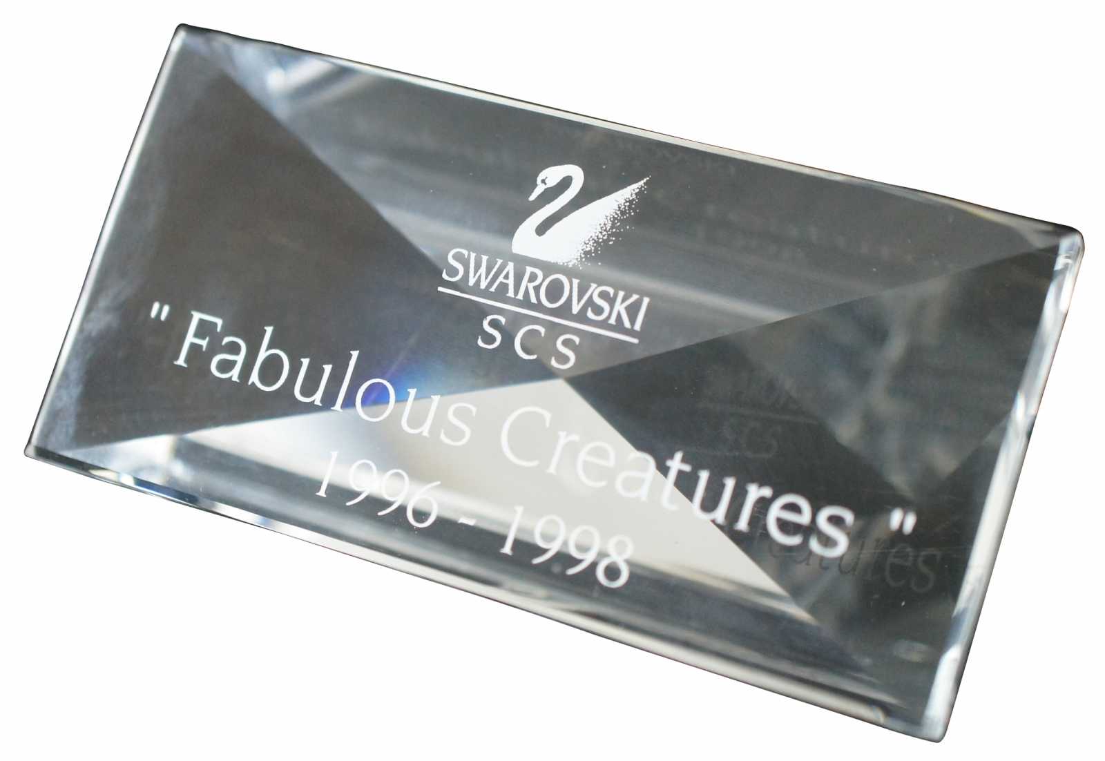 Swarovski SCS crystal title plaque for “Fabulous Creatures” 1996-1998.