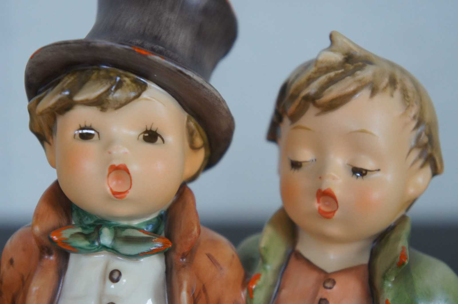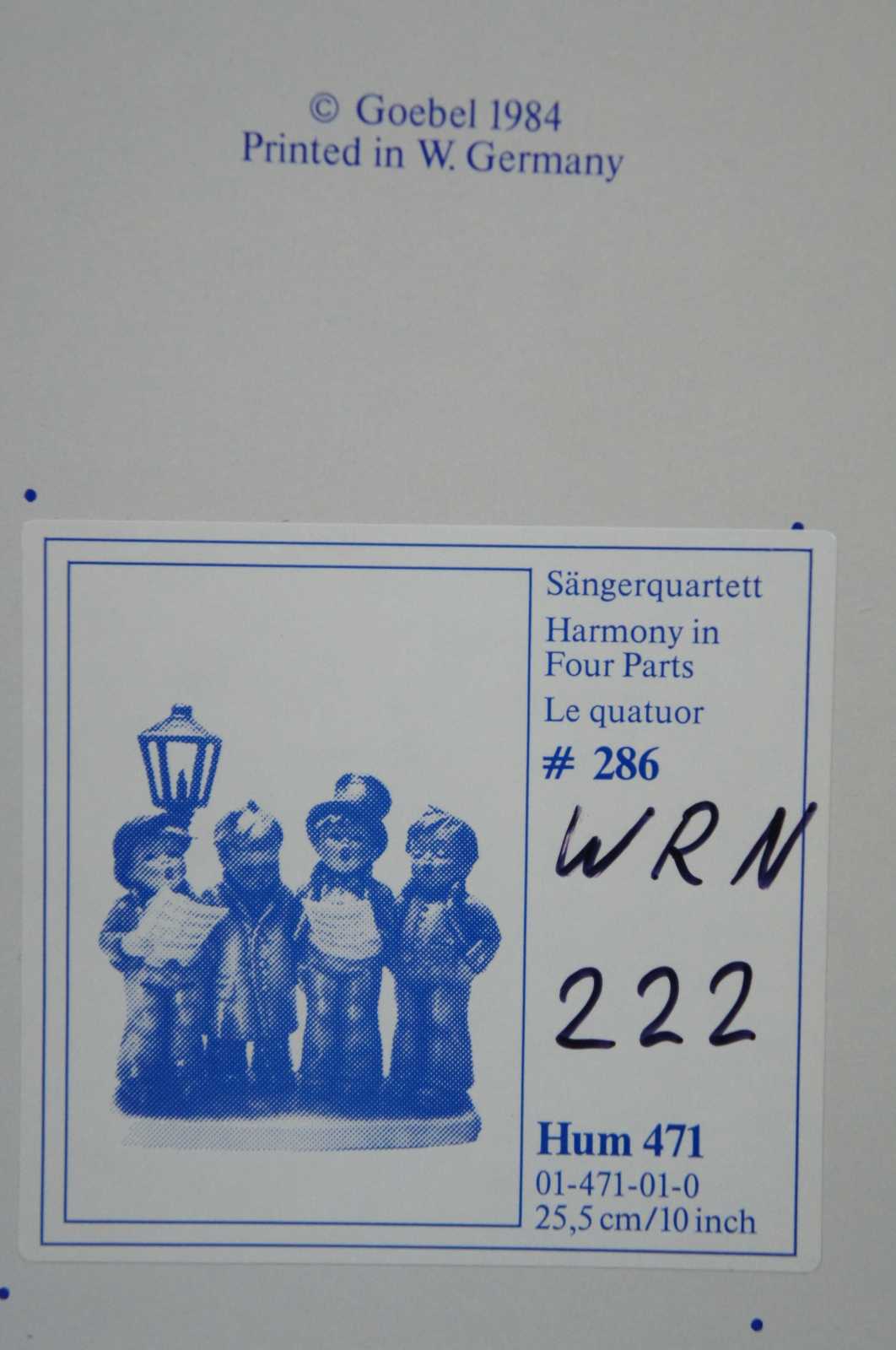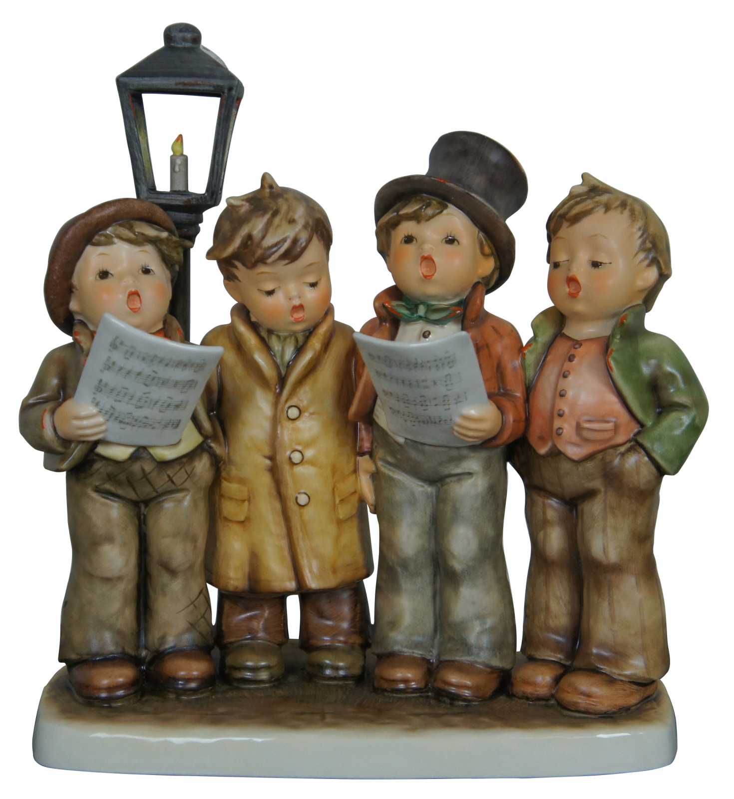 Goebel West Germany Century Collection ceramic figurine #471 – Harmony in Four Parts aka Sangerquartett aka Le Quatuor – portraying four young boys caroling under a candle lit street lmap.