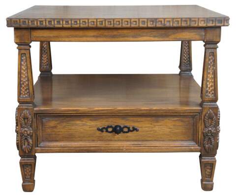 Romweber Viking Oak Side Table with drawer, circa 1960s.