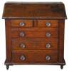 Late 19th century rectangular lift top slant lid stand up desk. Features five dovetailed drawers with glass handles and turned feet. The upper lid lifts to large storage compartment.