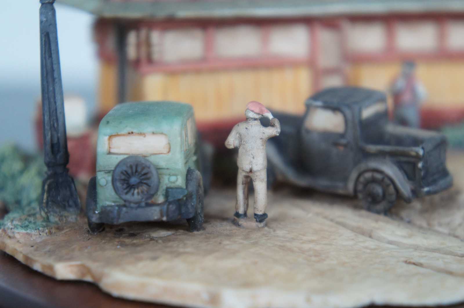 Schmid Route 66 Collection restaurant figurine on a wood base designed and signed by Lowell Davis, titled “Nel’s Diner” and numbered 316/2500. Pepsi. Schmid. Border Fine Arts, made in Scotland in 1990.