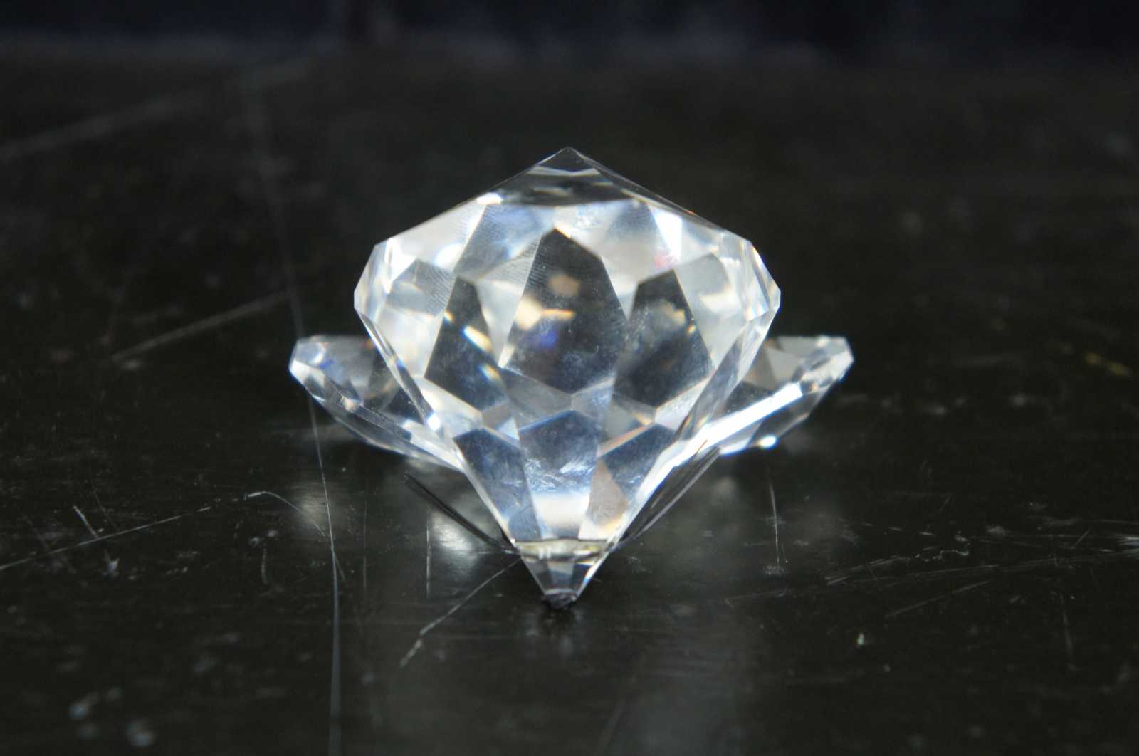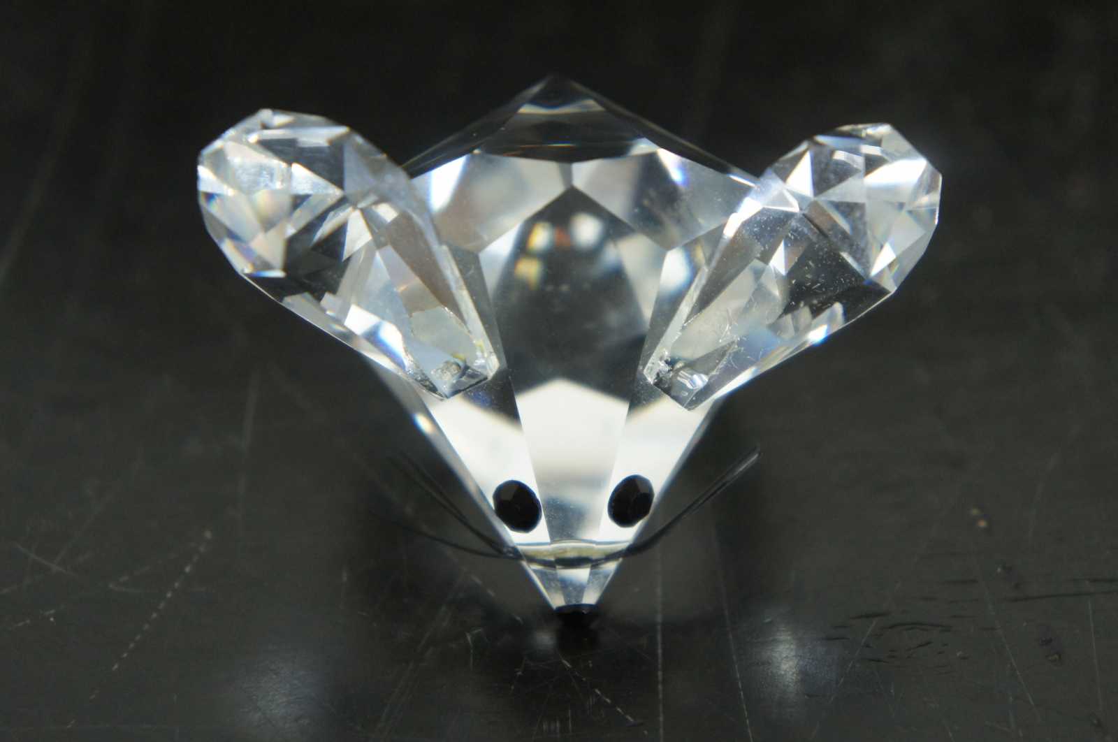 Swarovski crystal mouse figurine with a gem shaped body and black whiskers.