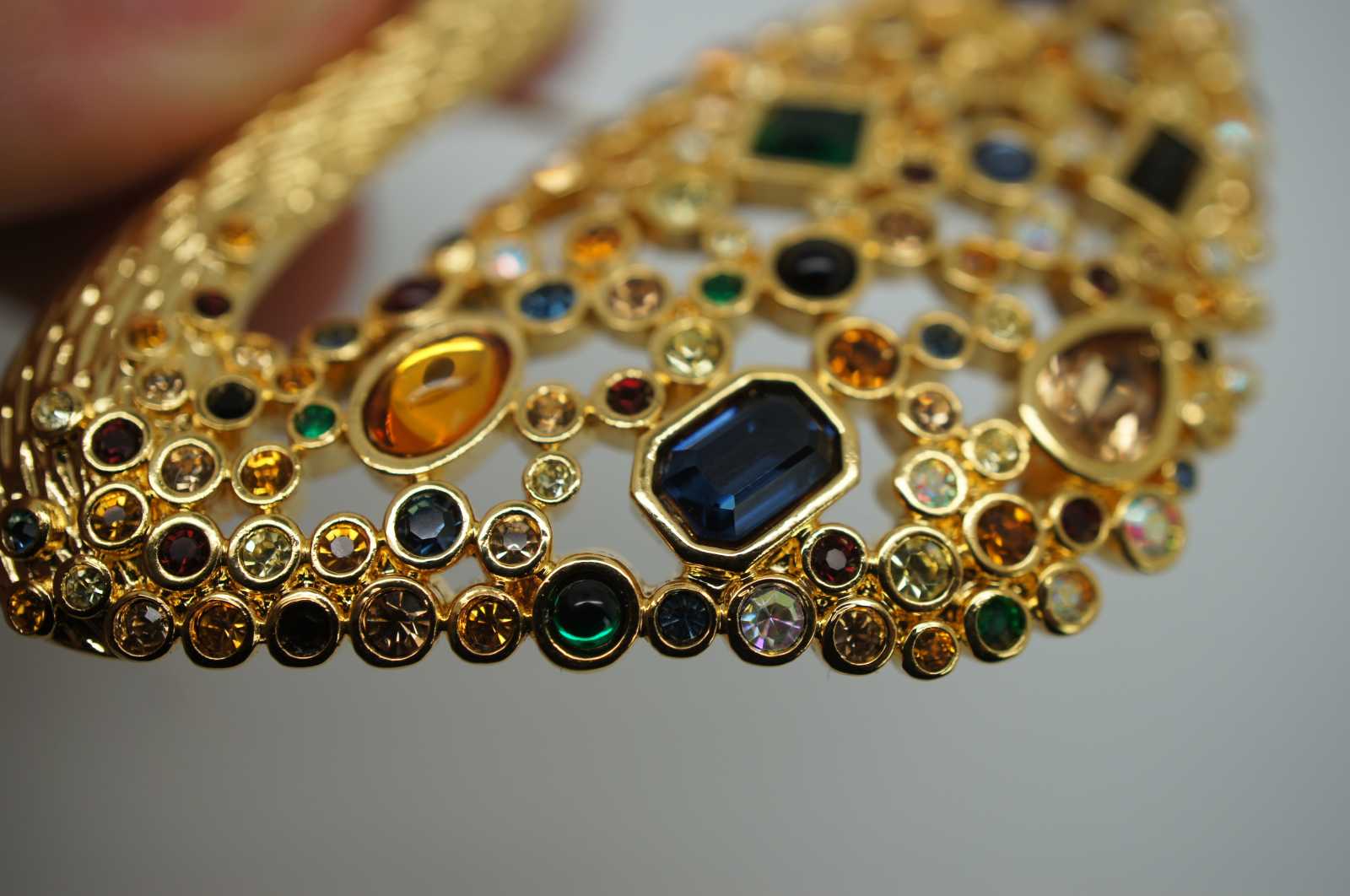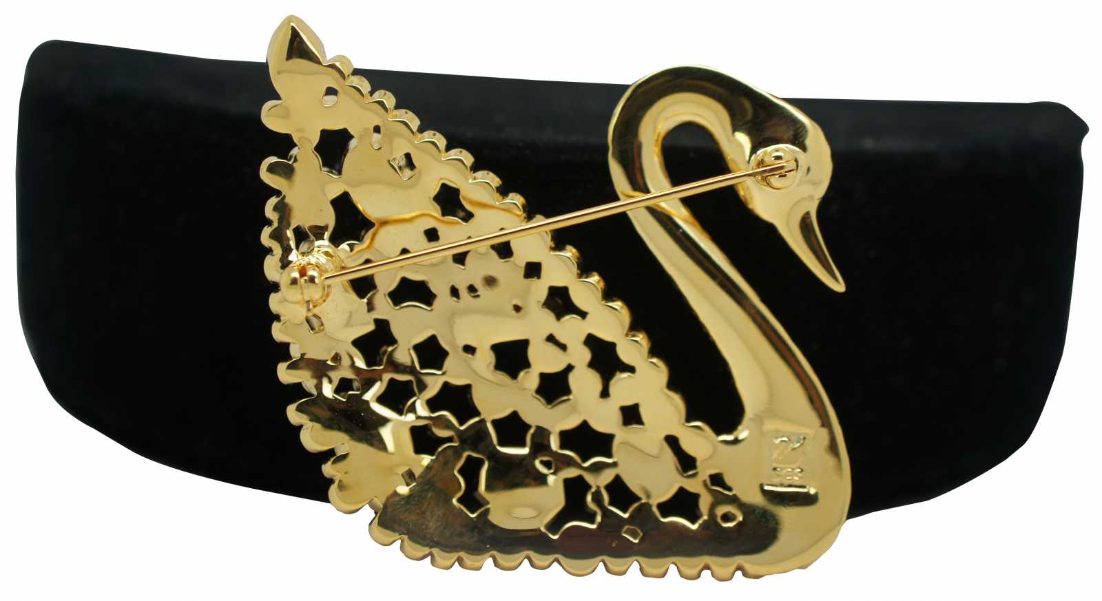 1995 Swarovski Collector’s Society exclusive Centenary Swan Brooch – Gold tone swan with feathered pattern on the neck embellished with an array of colored and shaped crystals.. Includes original certificate and box.
