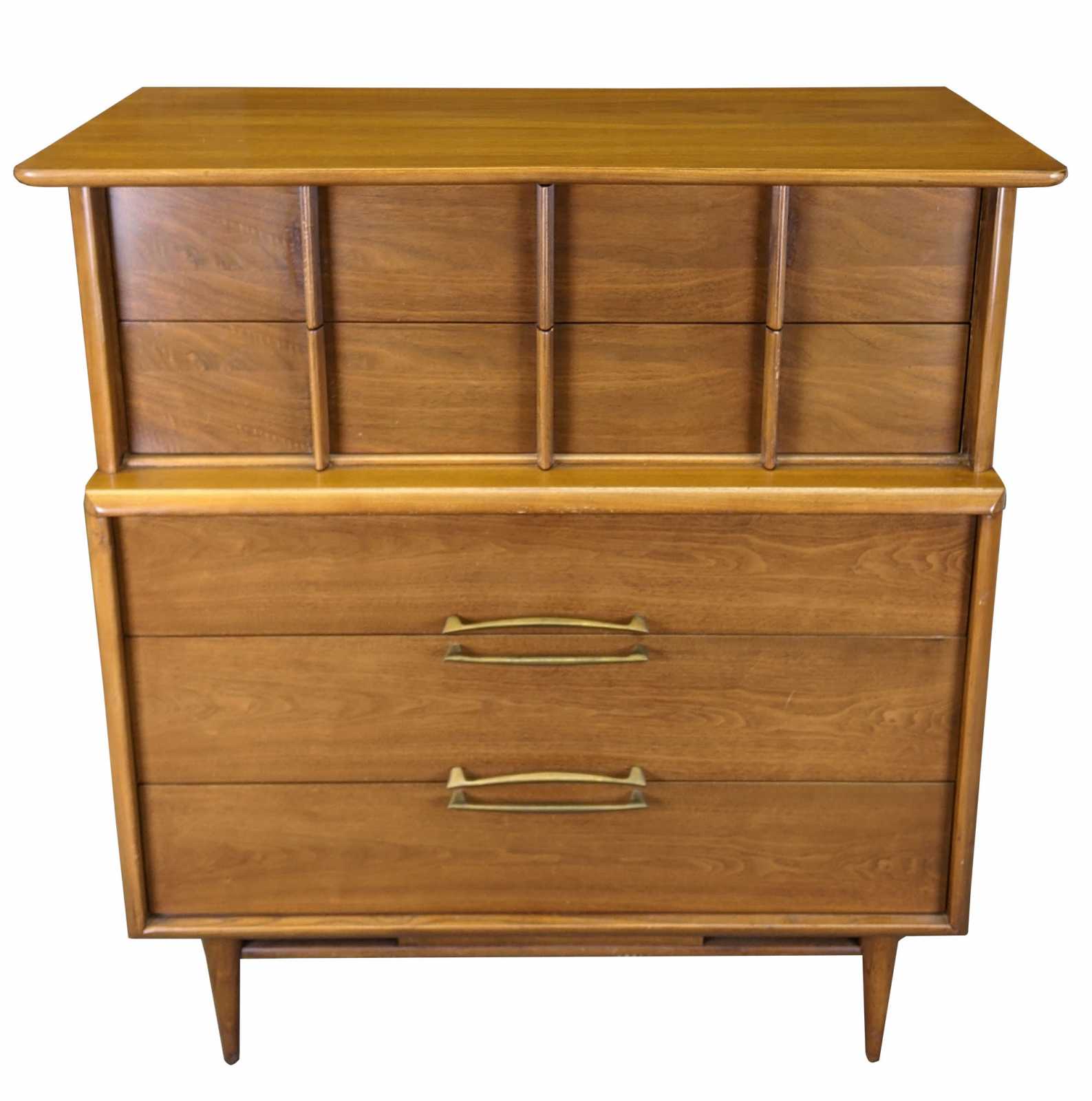Vintage scuptural shaped dersser by Kent Coffee. Made from continiental walnut with dovetailed drawers and tapered legs. Circa 1960s. #6900.
