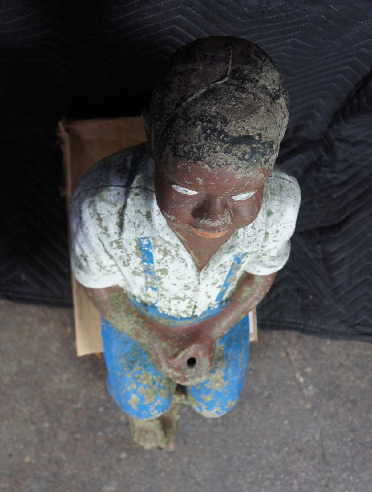 Antique condition, missing pole, paint and concrete loss, weathering / eroding from exposure to elements over the years, eyes need repainted, see pictures.