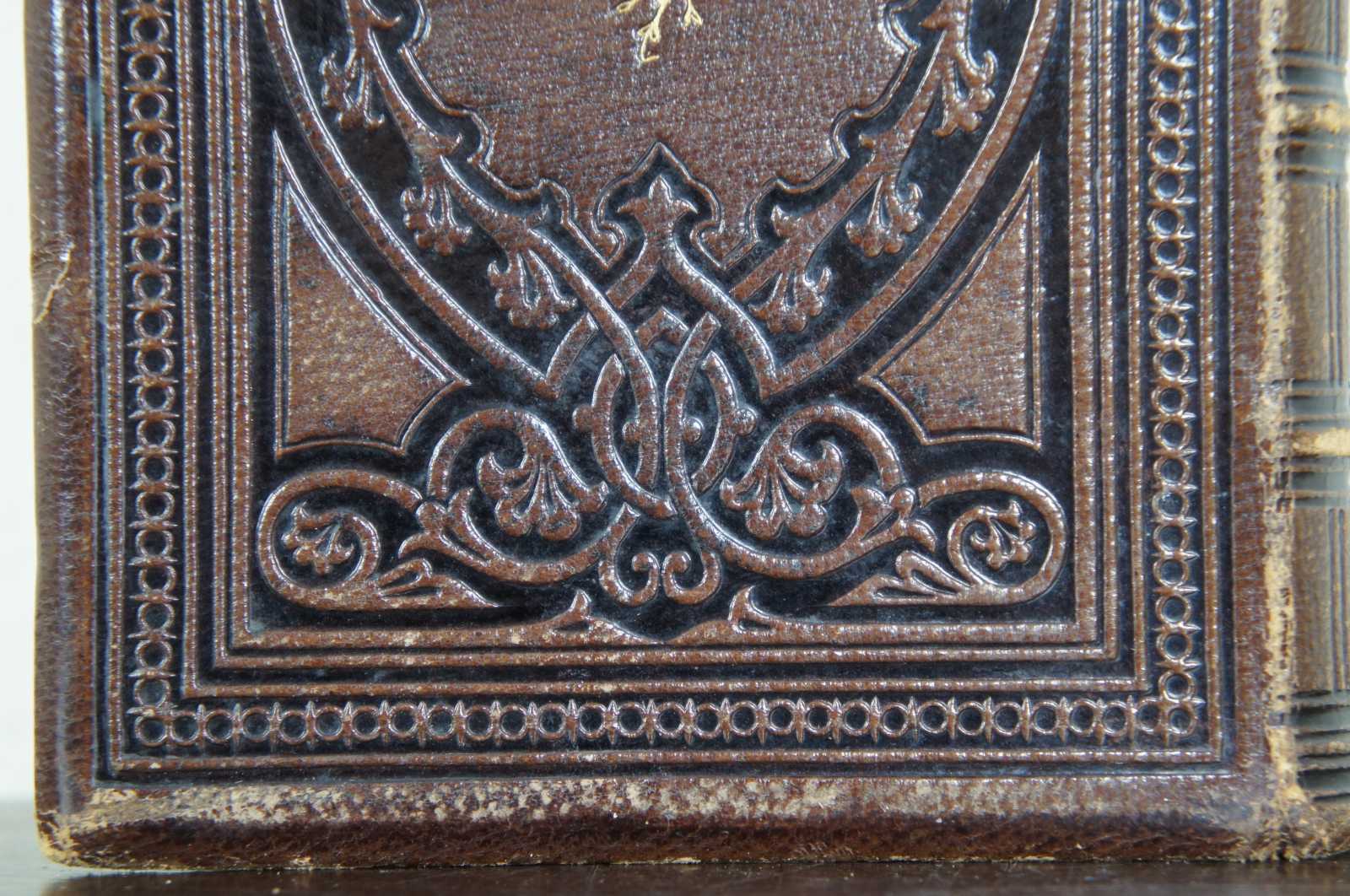 Antique embossed leather bound copy of the Poetical Works of Henry Wadsworth Longfellow, published by T. Nelson & Sons, London in 1859. Complete with illustrations and a hand signed note from 1860.