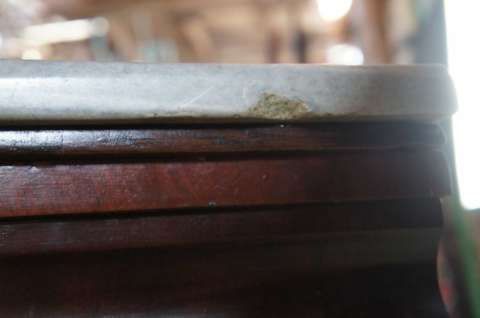 Good antique condition, some distressing and wear commensurate with age and use, light veneer loss / chipping, marble not original and has wear / damaged / repair on back left, see pictures.