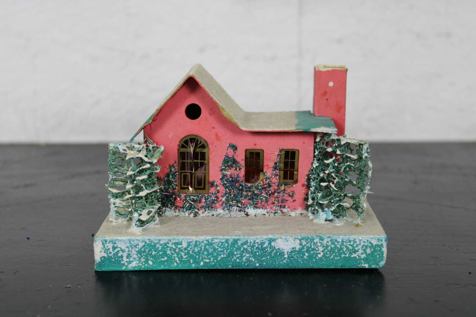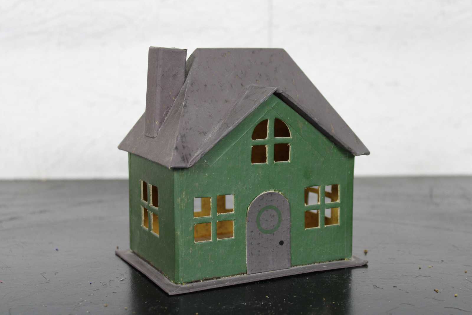 After World War II cardboard or paper houses became widely available in the United States. These popular paper houses were decorated with mica glitter ""snow"", bottle brush trees, tiny reindeer and even snowmen. Many of the putz houses available had a small hole in the back or bottom to place Christmas lights in to illuminate the cellophane windows. Cardboard putz houses and churches became so popular during the mid-20th century they became part of an ever expanding Christmas village to include train sets, lanterns and other small Christmas figurines.
