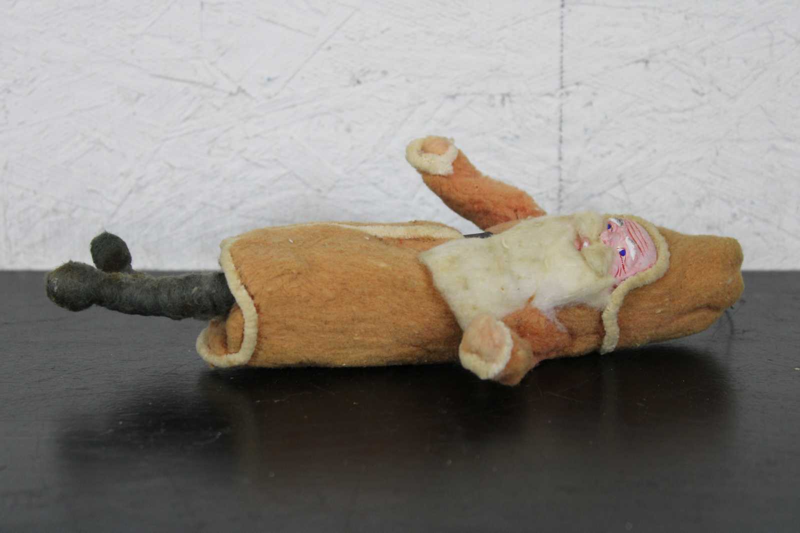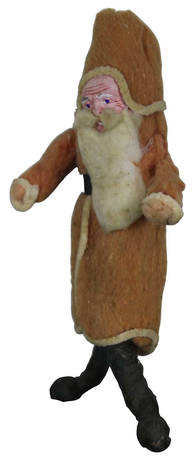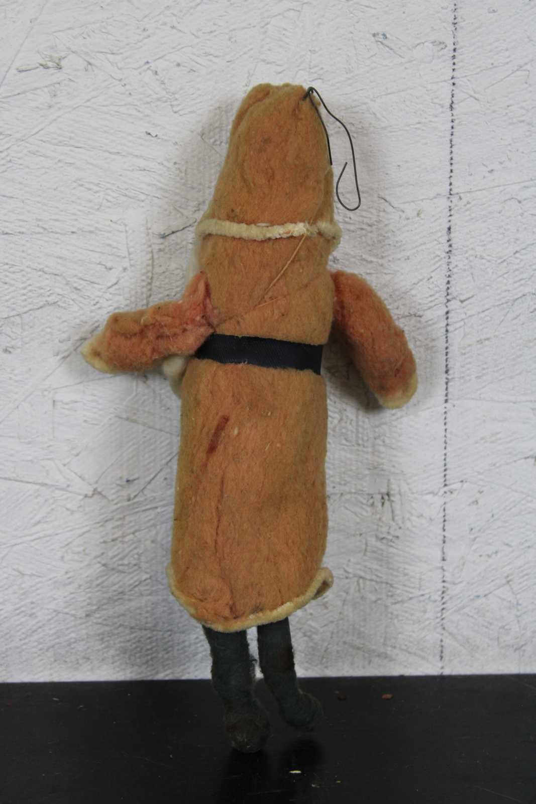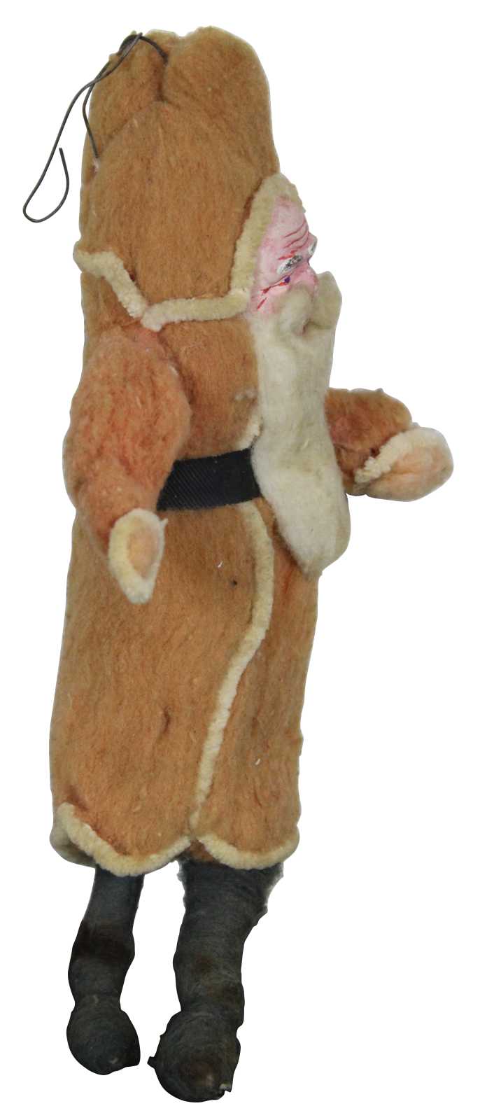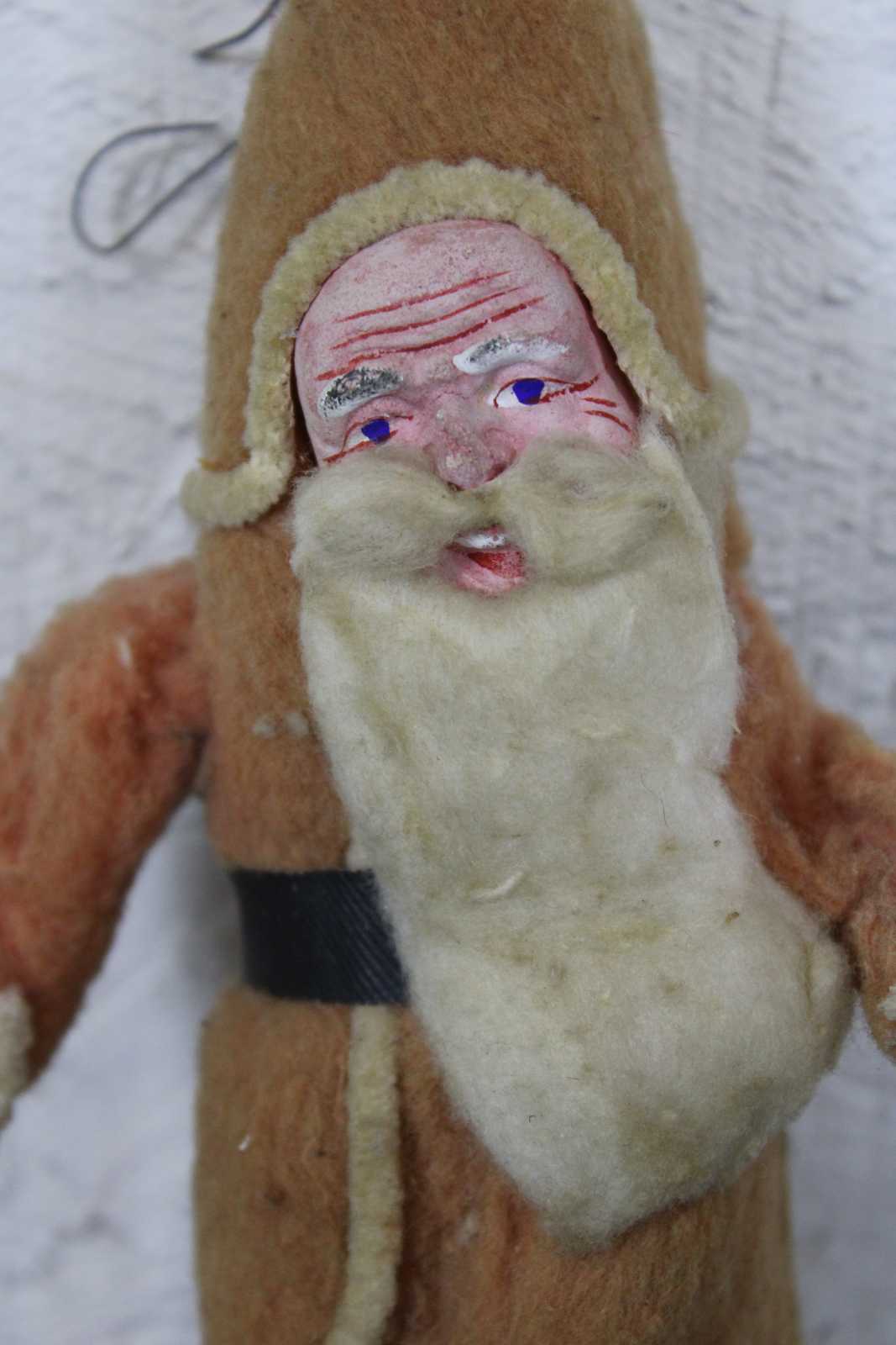 Large antique German spun cotton wool Santa Claus Christmas ornament doll with hand painted composition face.