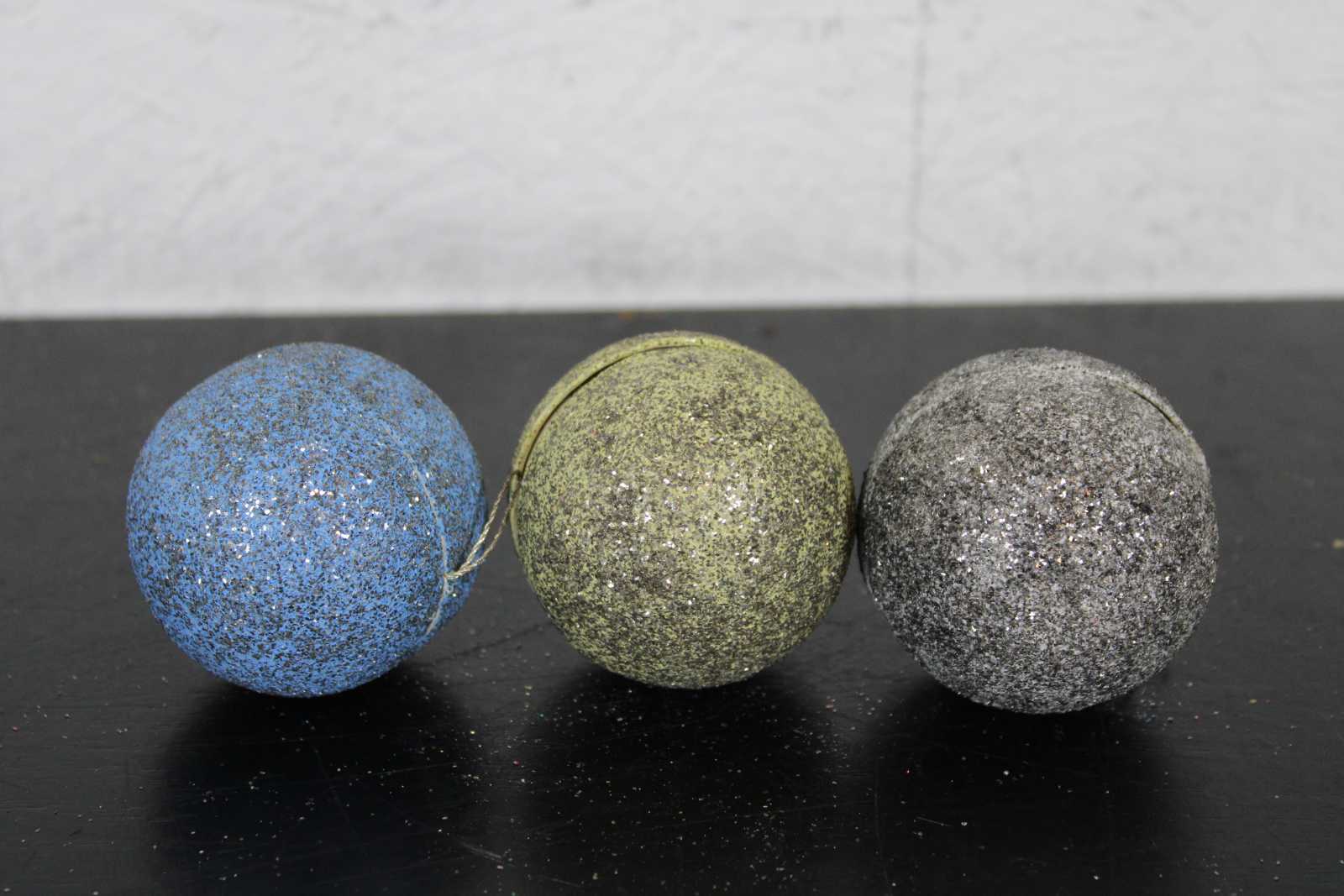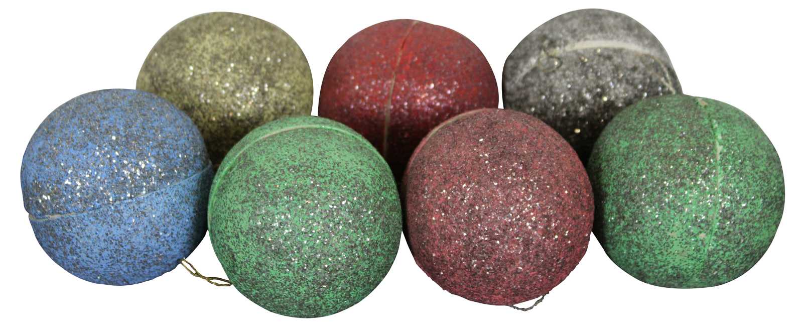 Lot of fifteen vintage West German paper mache Christmas ornament ball candy containers, eight featuring three different lithograph scenes of Santa Claus, children and angels; the remaining seven are painted in solid colors accented with silver glitter. Attributed to Kurt S Adler.