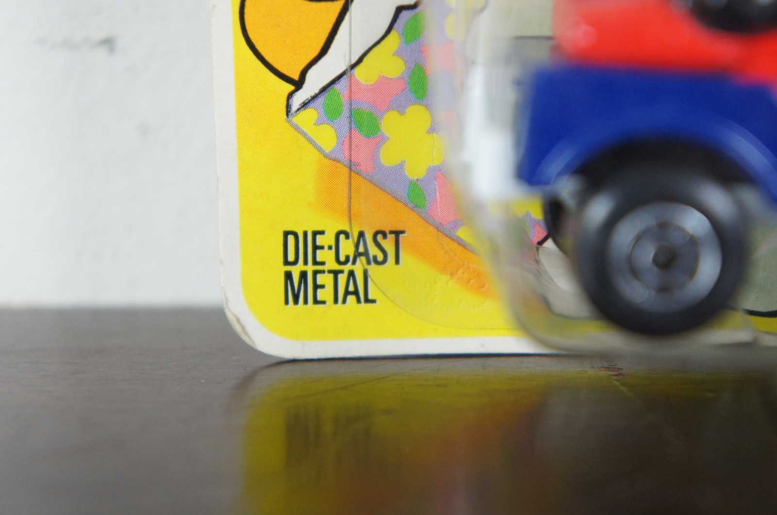 Set of four vintage 1979 die cast metal cars by Matchbox with Walt Disney characters driving. Set includes (unopened) Jiminy Cricket, Mickey Mouse, and Goofy in a green hat plus (without packaging) Goofy in a leather helmet.