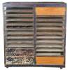 Antique apothecary cabinet, circa first half 20th century. Features a unique file system with clear plexi windows along the front. Includes 2 lower drawers along the left.