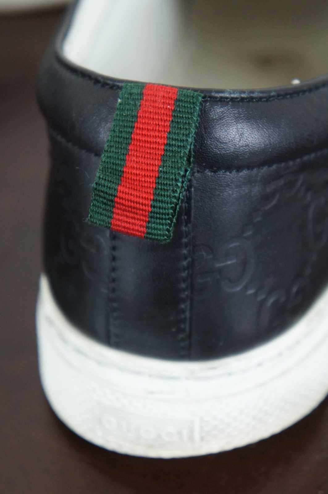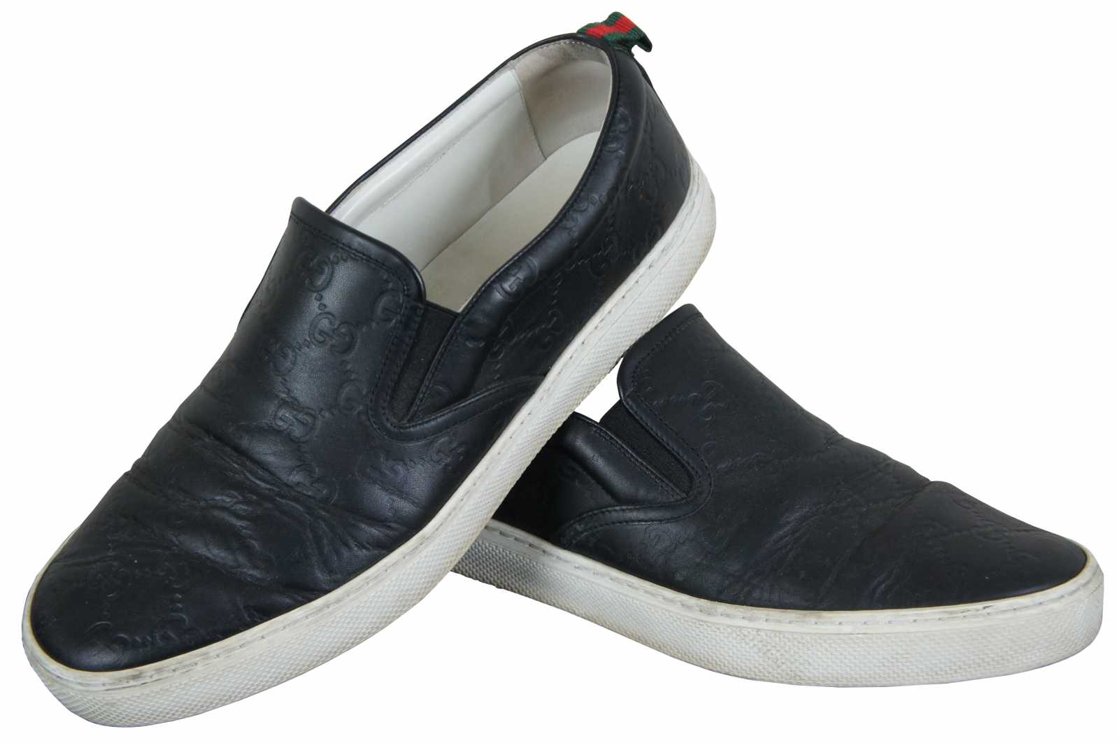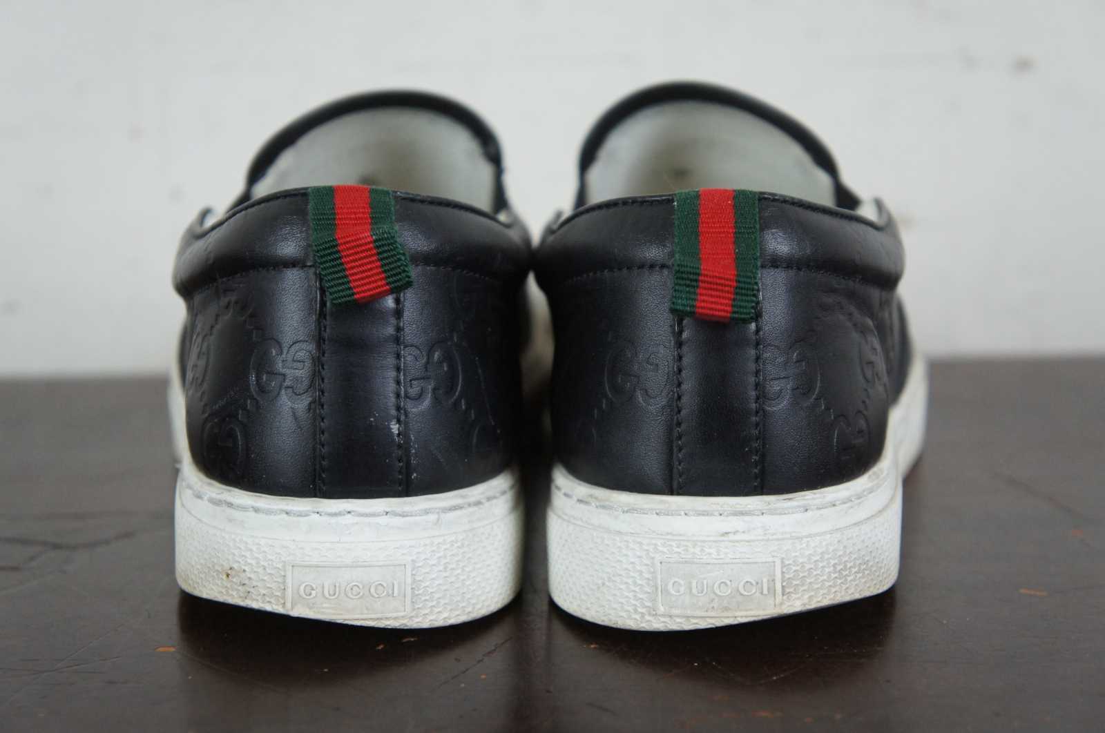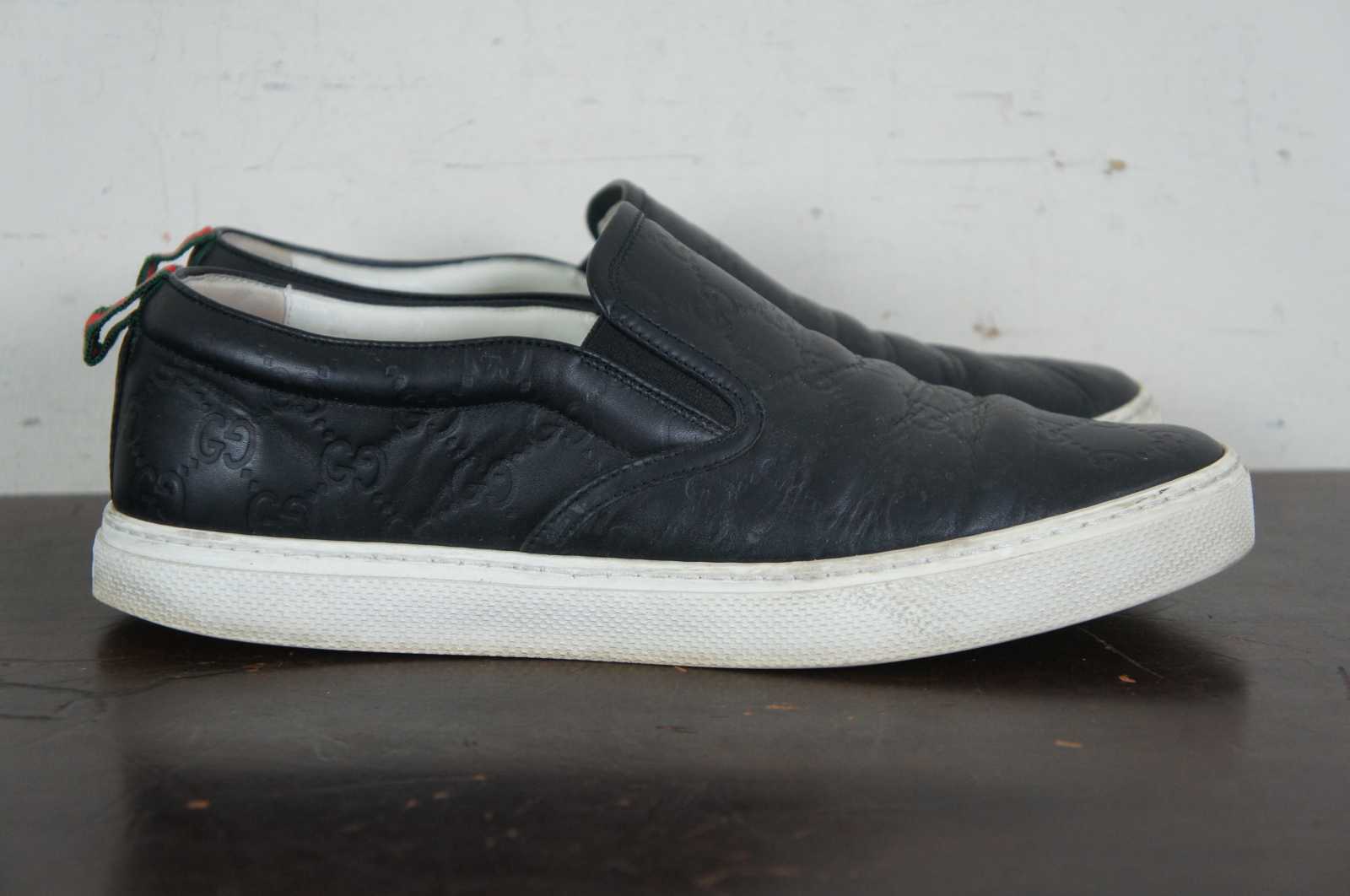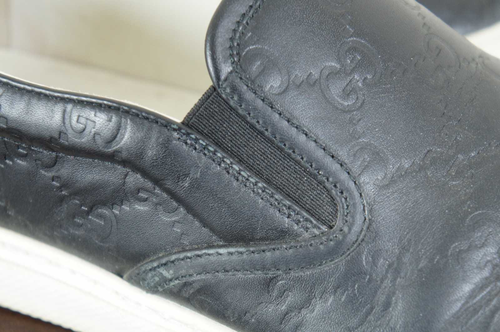 Gucci Signature monogrammed men’s leather slip on sneaker 407364 in Nero (black).