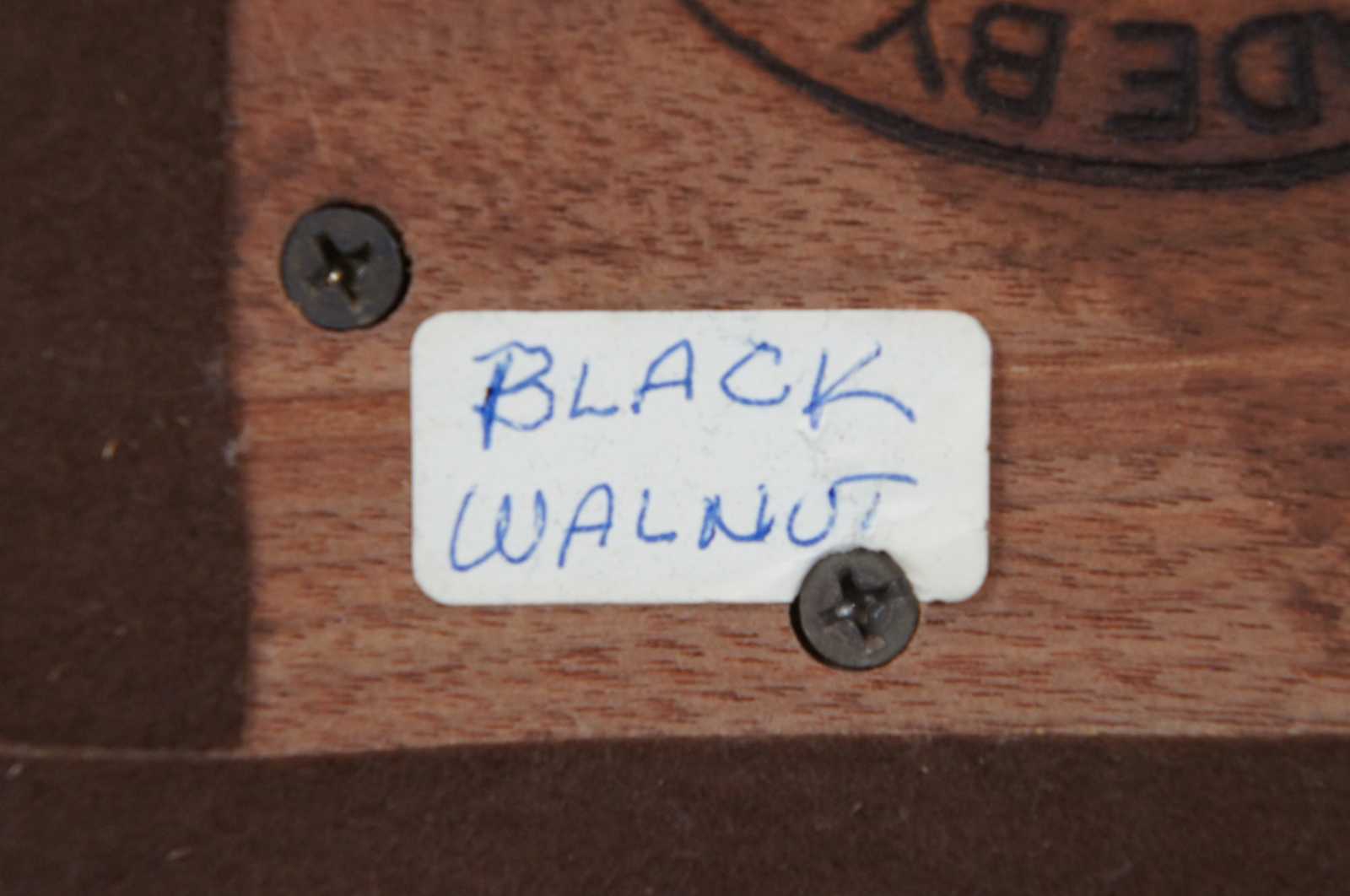 Antique locking coin bank with post office door front fashioned out of black walnut by John G Simon of Centerville, OH.
