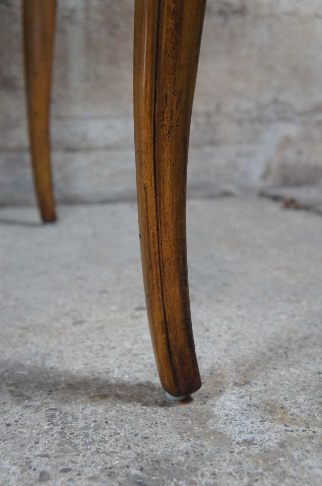 Henredon French Country side table. Circa 1986. Made from Walnut with an inset bookmatched walnut top over a carved and scalloped arpon. The tables are supported by cabriole legs with shell and cartouche carvings. Style No 3201-42