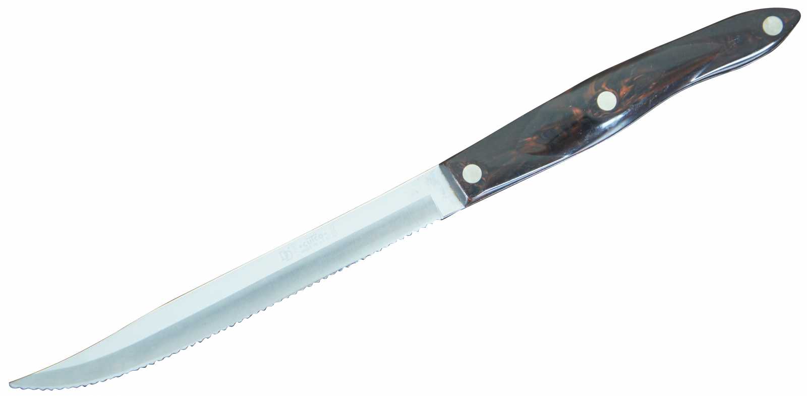 Cutco model number 1729, petite carver table knife with DD C85 serrated blade and brown faux tortoise shell handle.