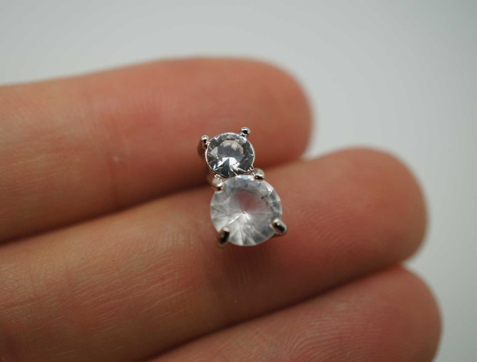 Swarovski crystal pierced ear earrings with hypoallergenic surgical steel posts. Features a smaller bright crystal stack on a larger frosted crystal.