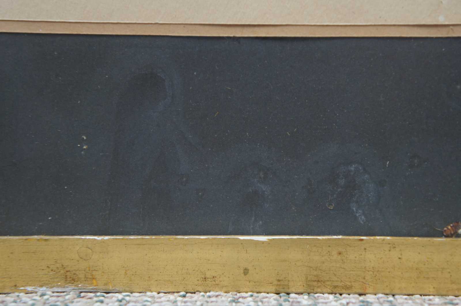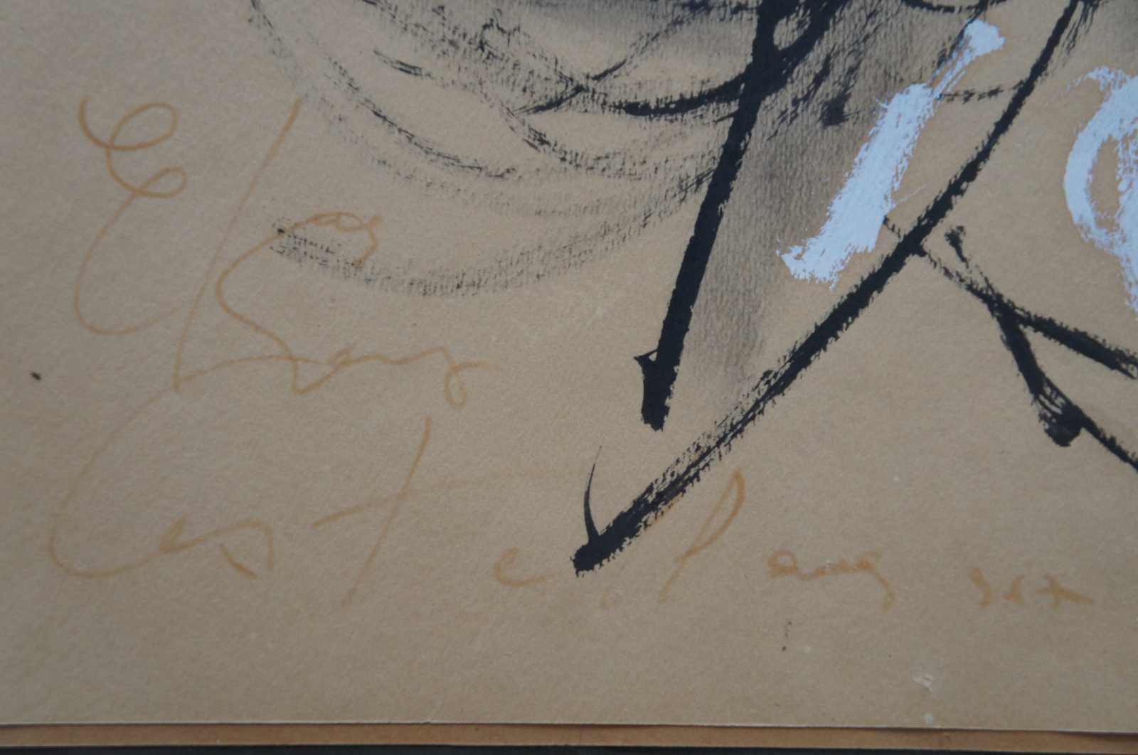 Vintage signed expressive painting on paper in black and white of a South American man with a beard and bandanna. Molduras Y Marcos. Casa Pietrella. Eligio Ayala 788.