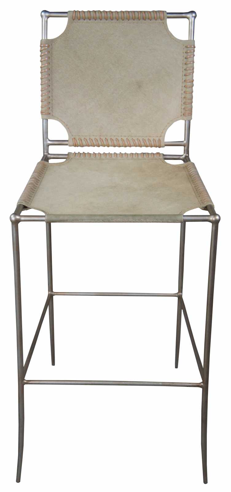 3 Caracole In Stitches bar stools,ATS-BARSTL-001. Part of their Modern Artisan line. Features a streamline metal frame with leather wrapped seat and back.