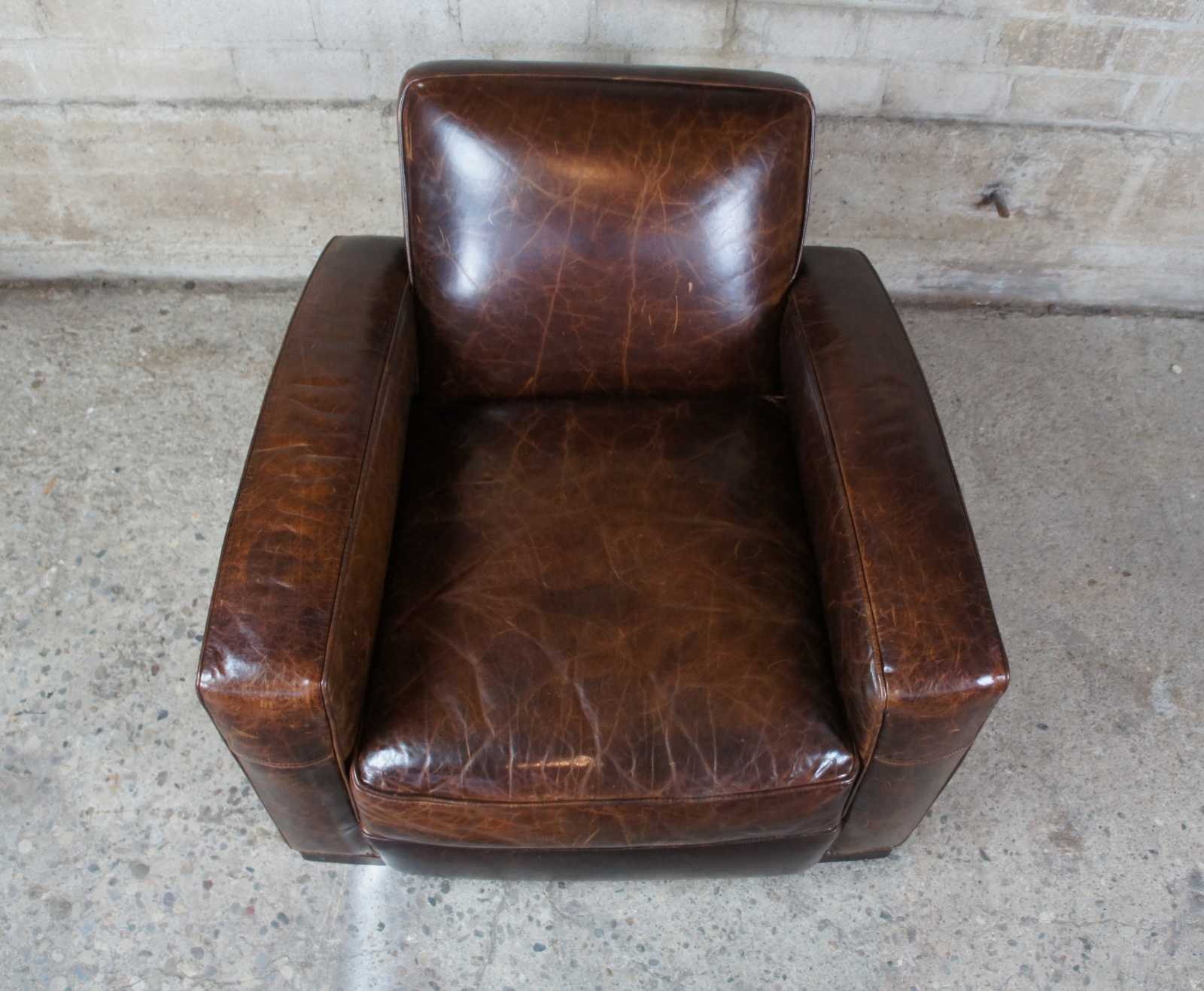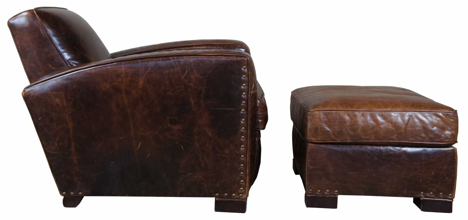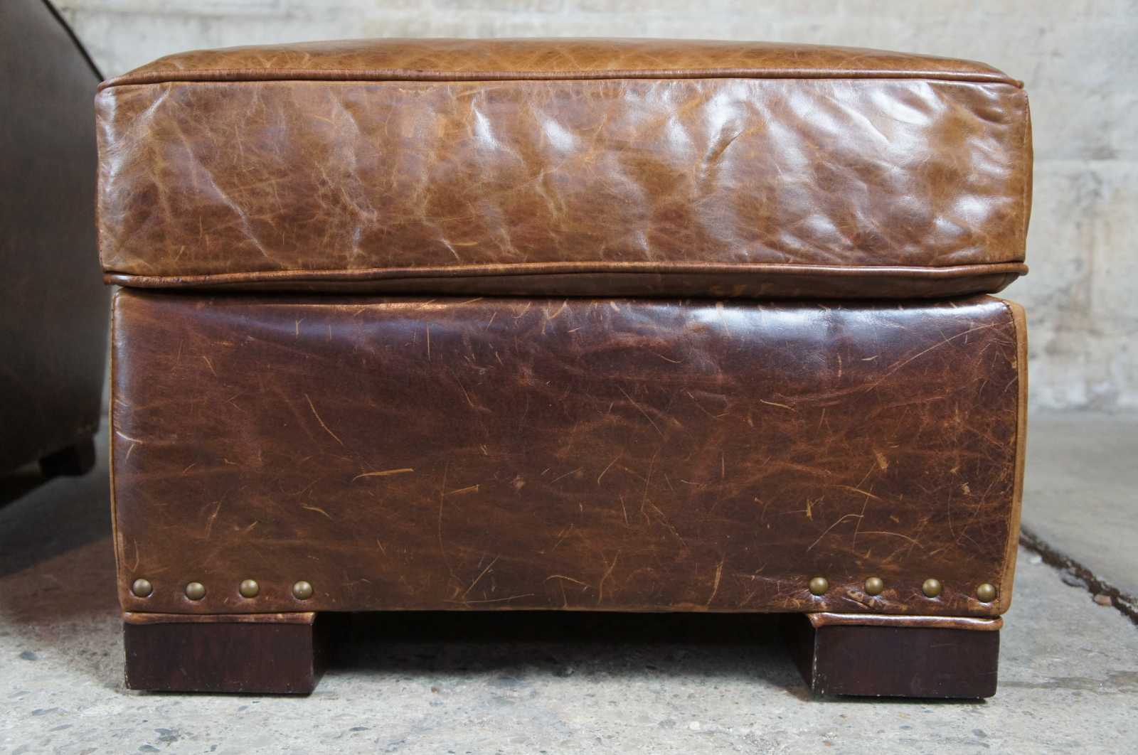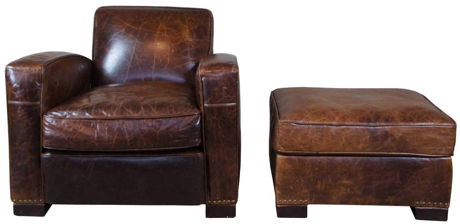 Restoration Hardware Distressed Brown Leather Library Club Chair & Ottoman