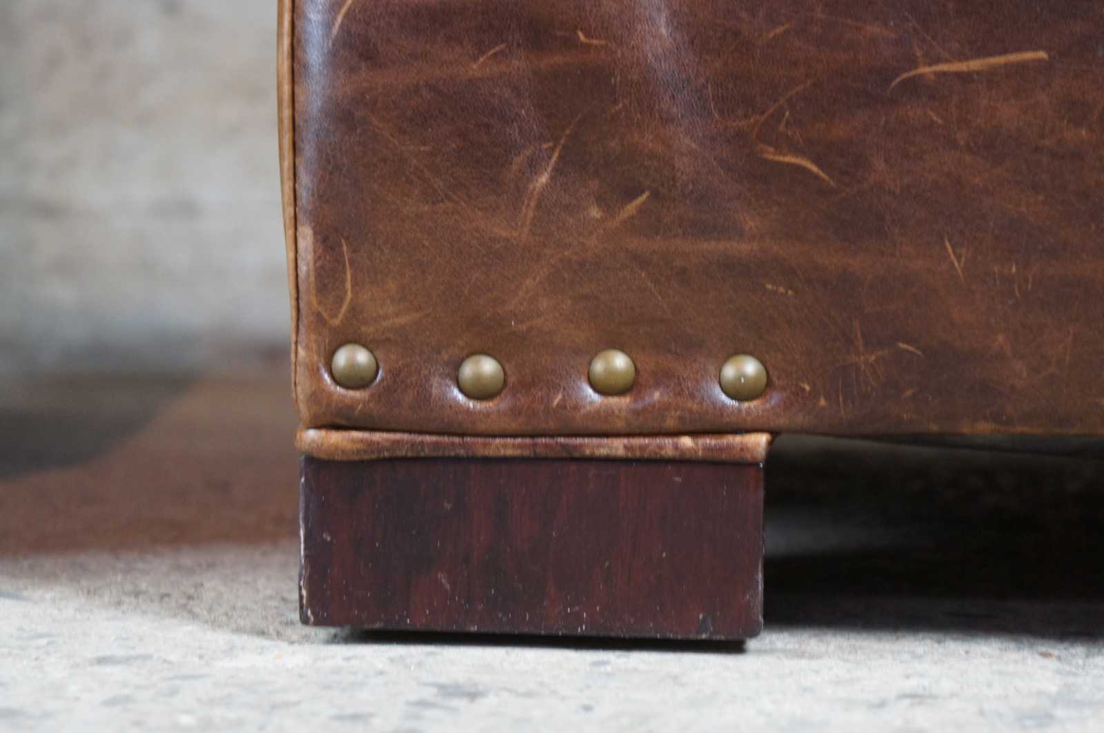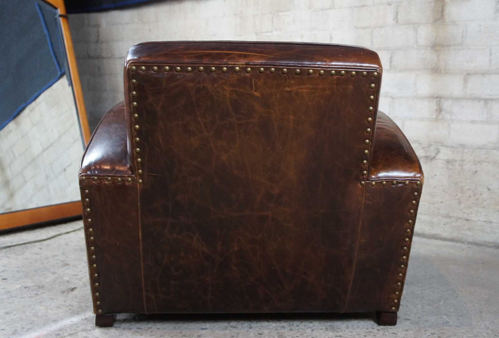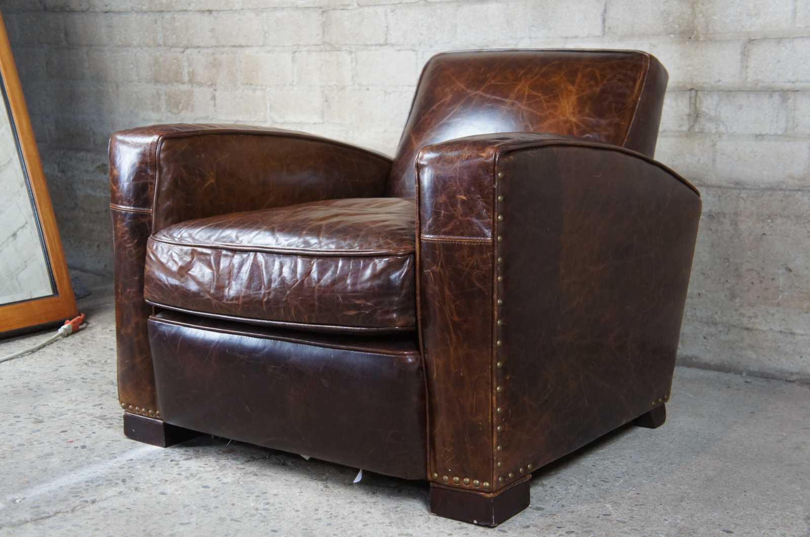 Restoration Hardware Distressed Brown Leather Library Club Chair & Ottoman