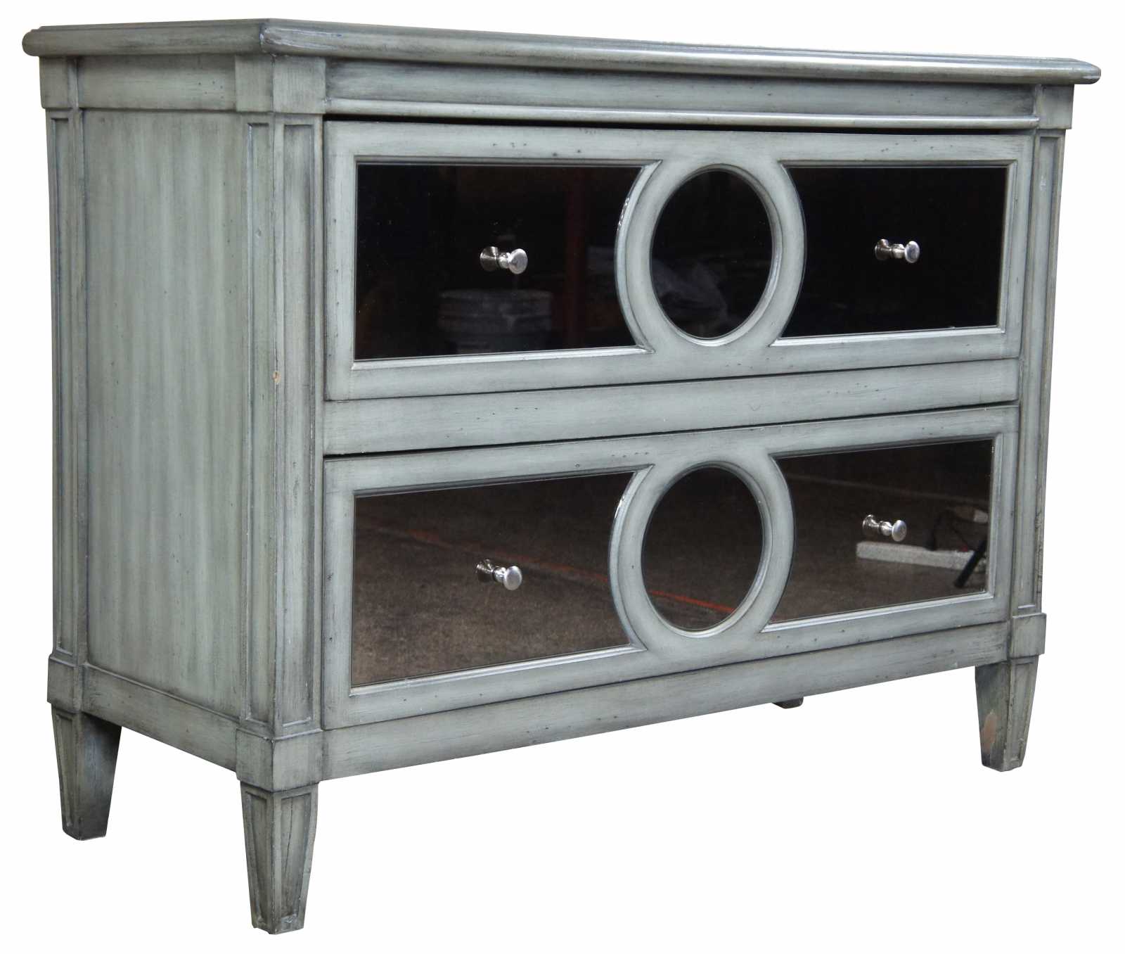 Stein Worlds 2 drawer mirrored front chest. Features french styling paired with a contemporary look.