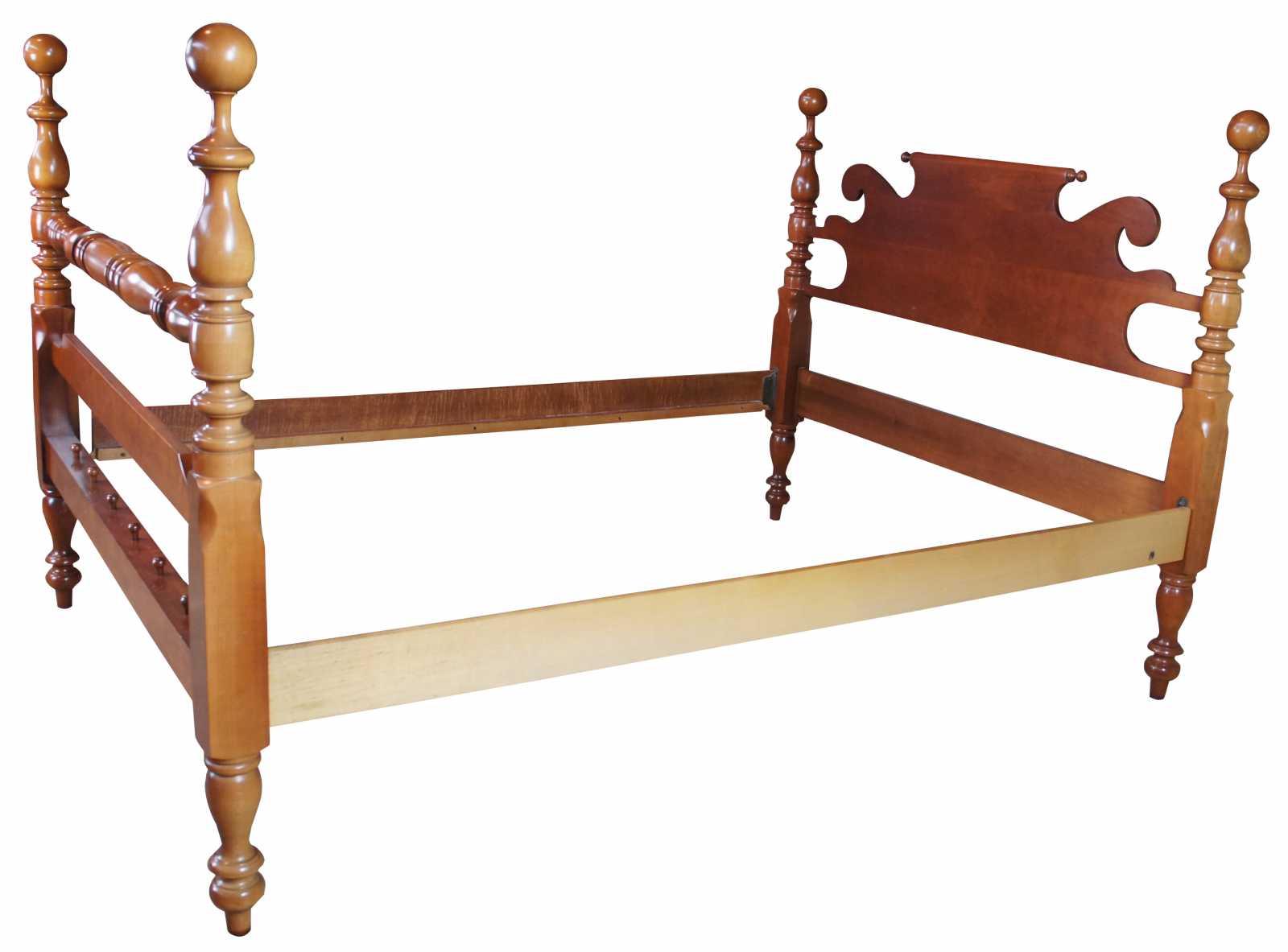 Cassdy Furniture Cannonball queen size bed. Made from American Cherry in a classic colonial style. Cassady Furniture is out of Bowling Green Kentucky, circa 1980s.