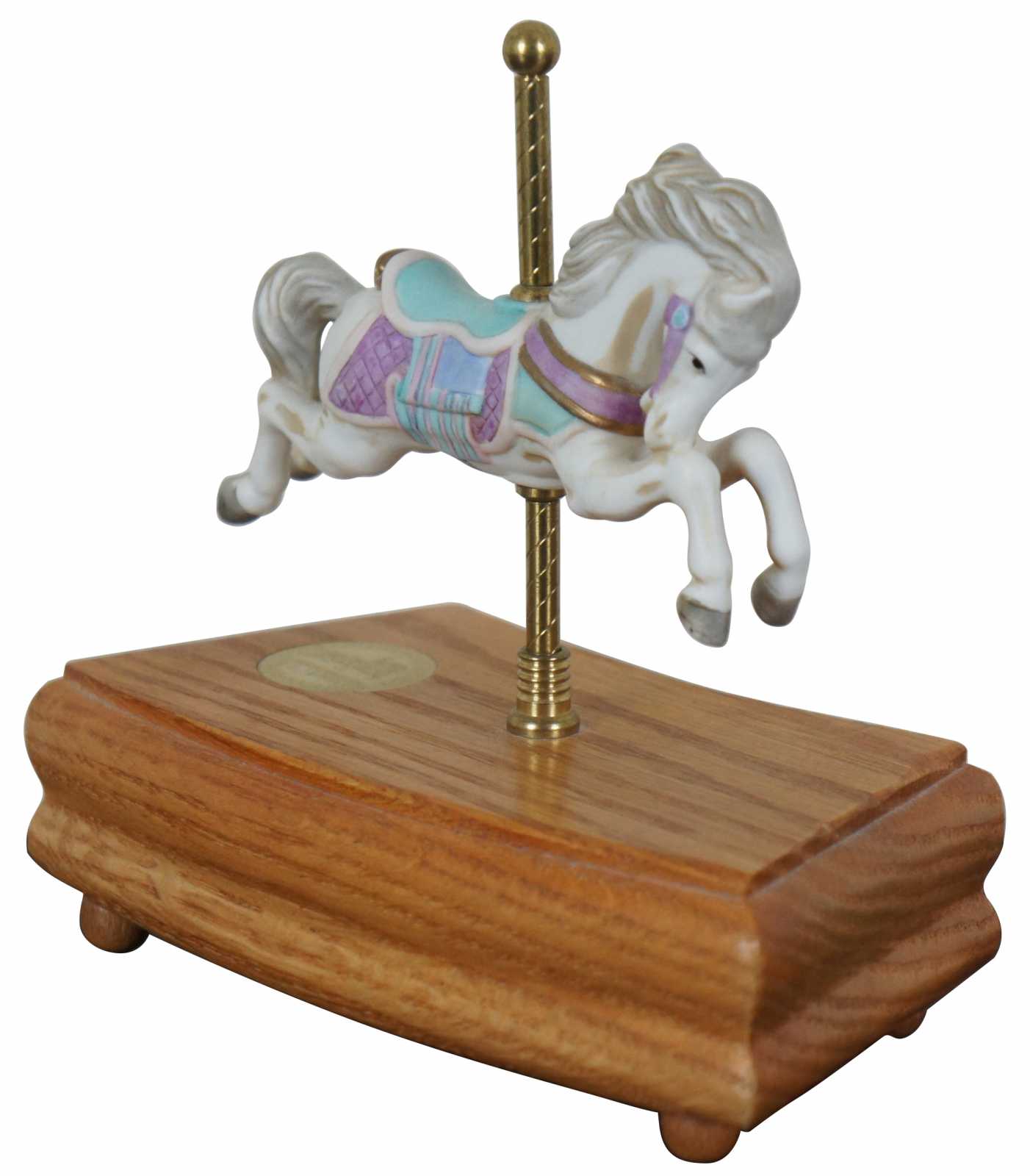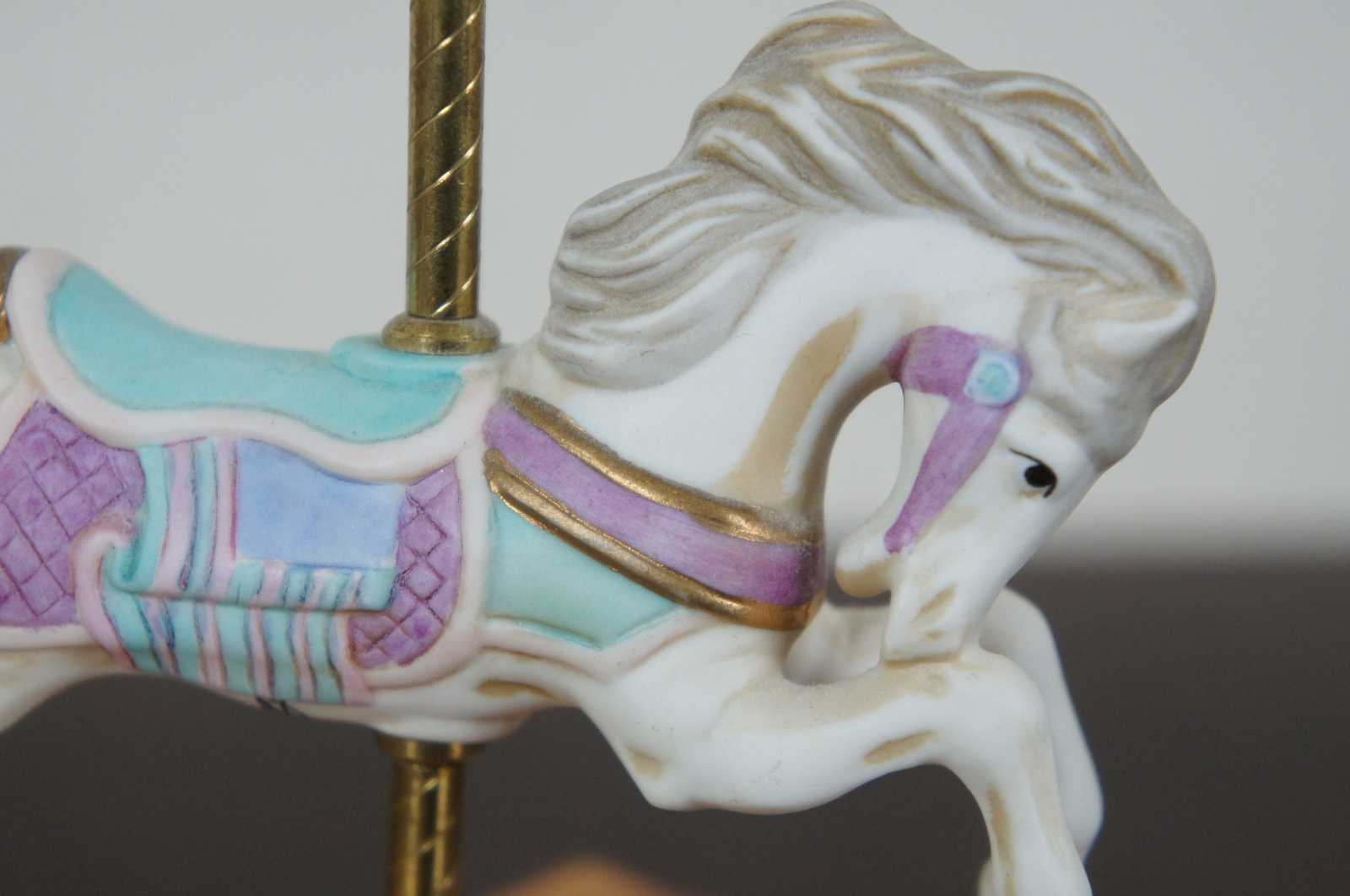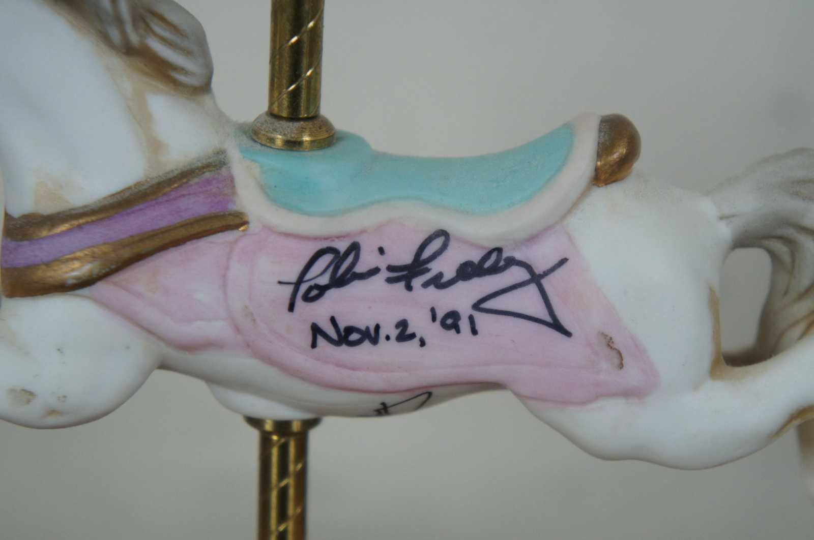 Rare hand signed 1991 Tobin Fraley carousel horse music box, Fourth Edition numbered 1104/14500; plays “As Time Goes By” while the horse moves gently up and down the pole.