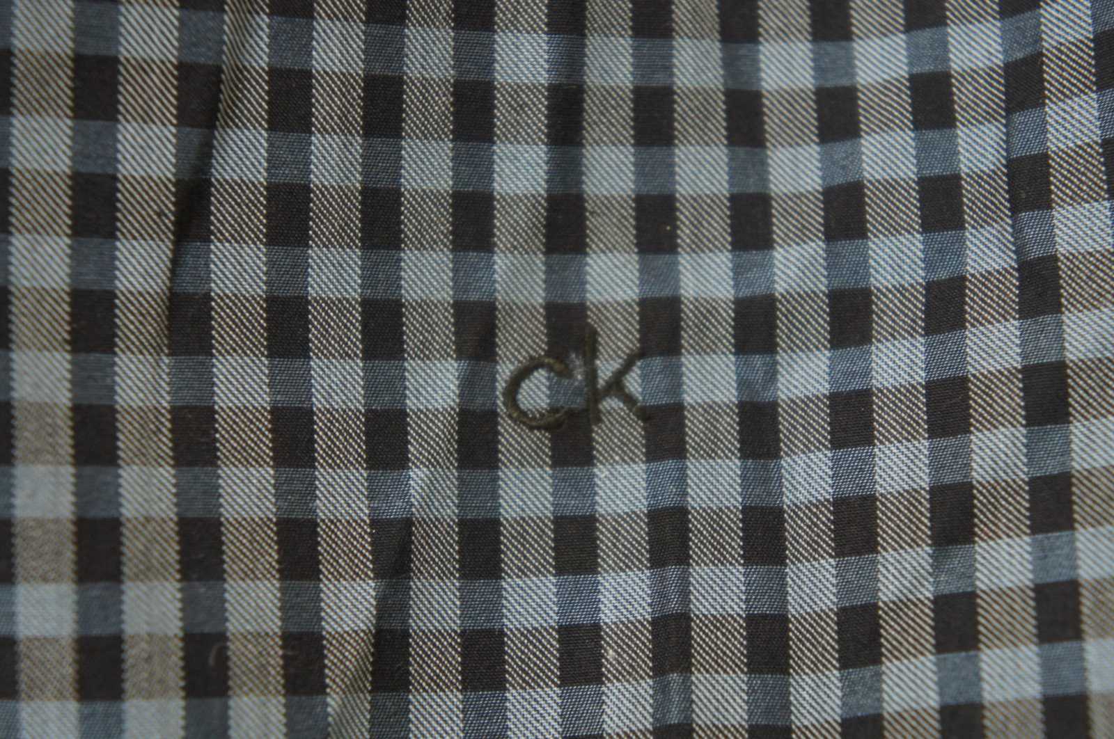 Calvin Klein mens long sleeve cotton cashmere blue and black gingham dress shirt.