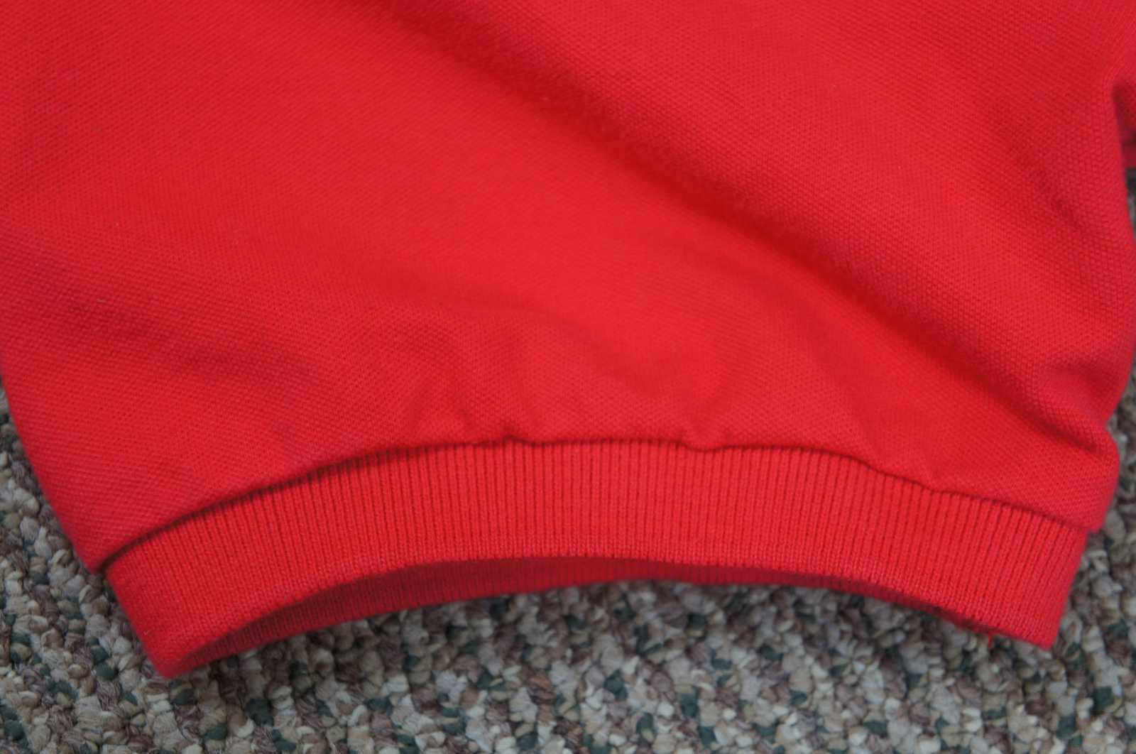 Lacoste mens short sleeve golf shirt in tomato red with embroidered alligator logo.