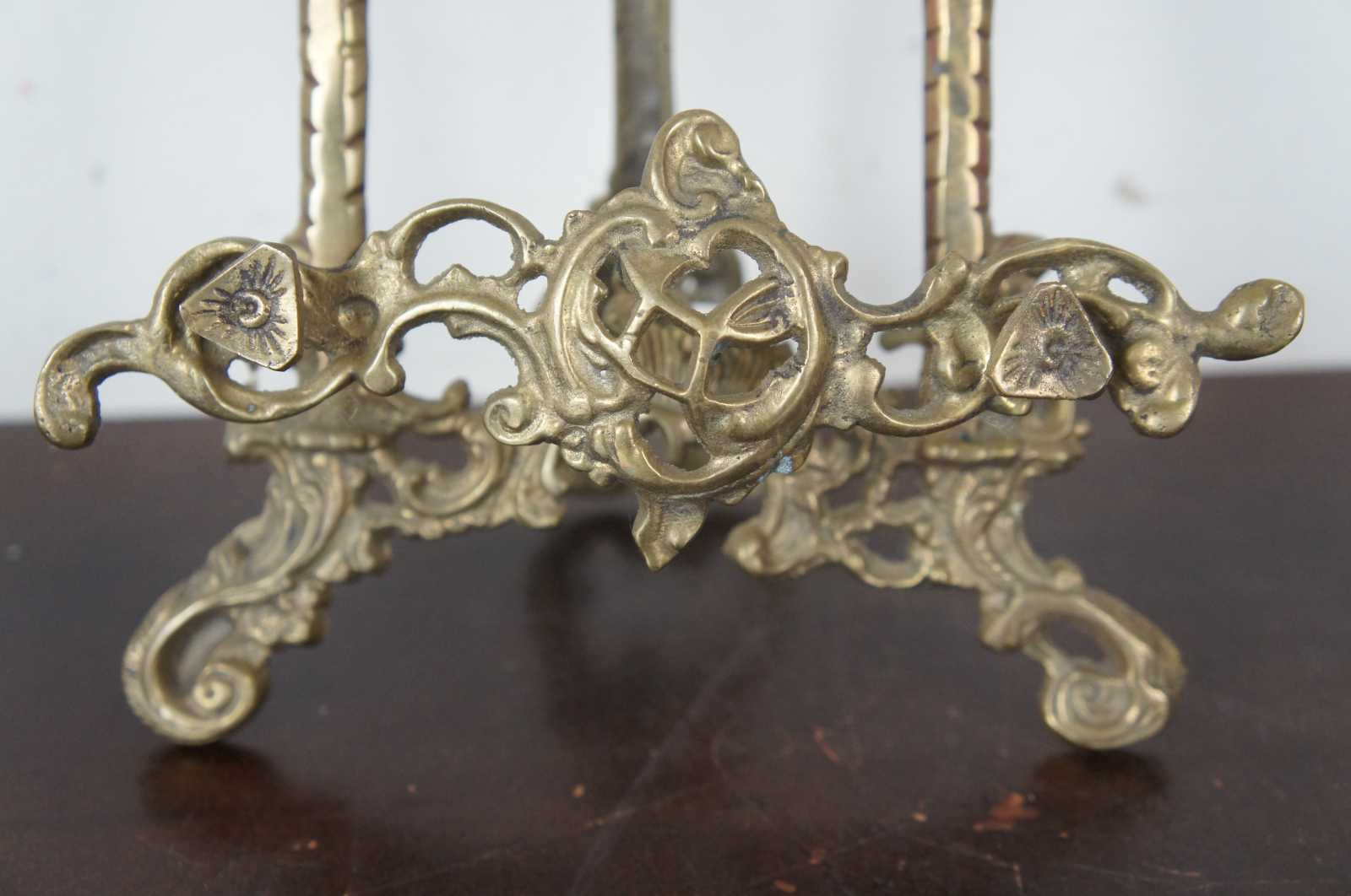 Vintage solid brass tabletop easel for plates, books, pictures or art. Made in India with baroque floral styling.