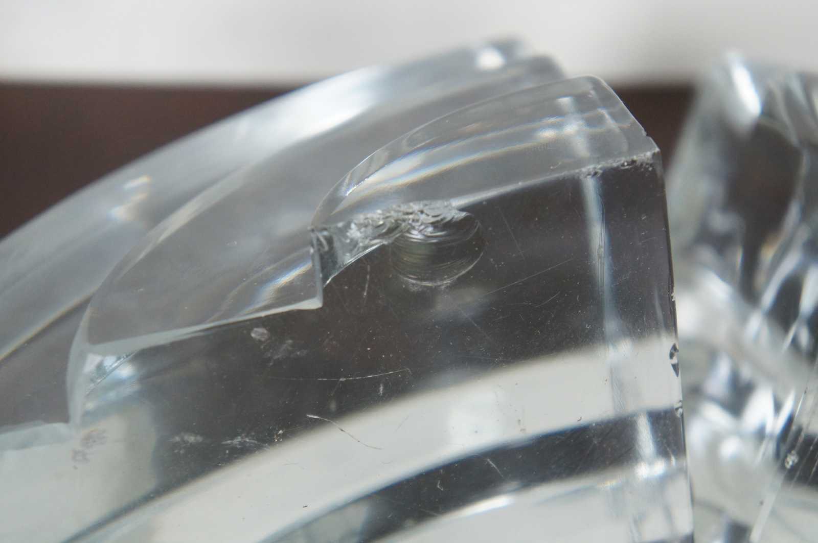 Vintage art deco inspired style pressed glass tiered geometric bookends made of layered semicircles.