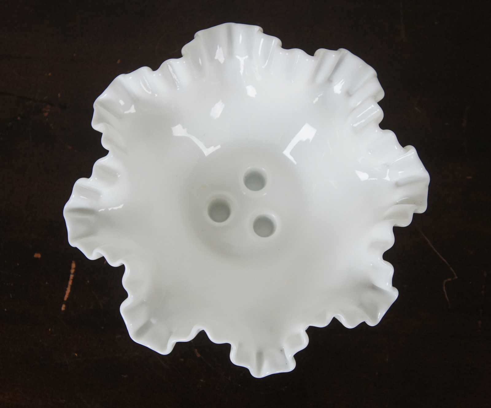 Fenton Milk Glass Hobnail 3 Horn Ruffle Epergne Centerpiece Flower Bud Vase Bowl