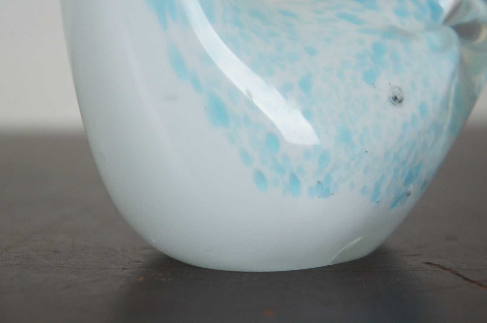 Vintage blue and white studio art glass goose or swan figurine.