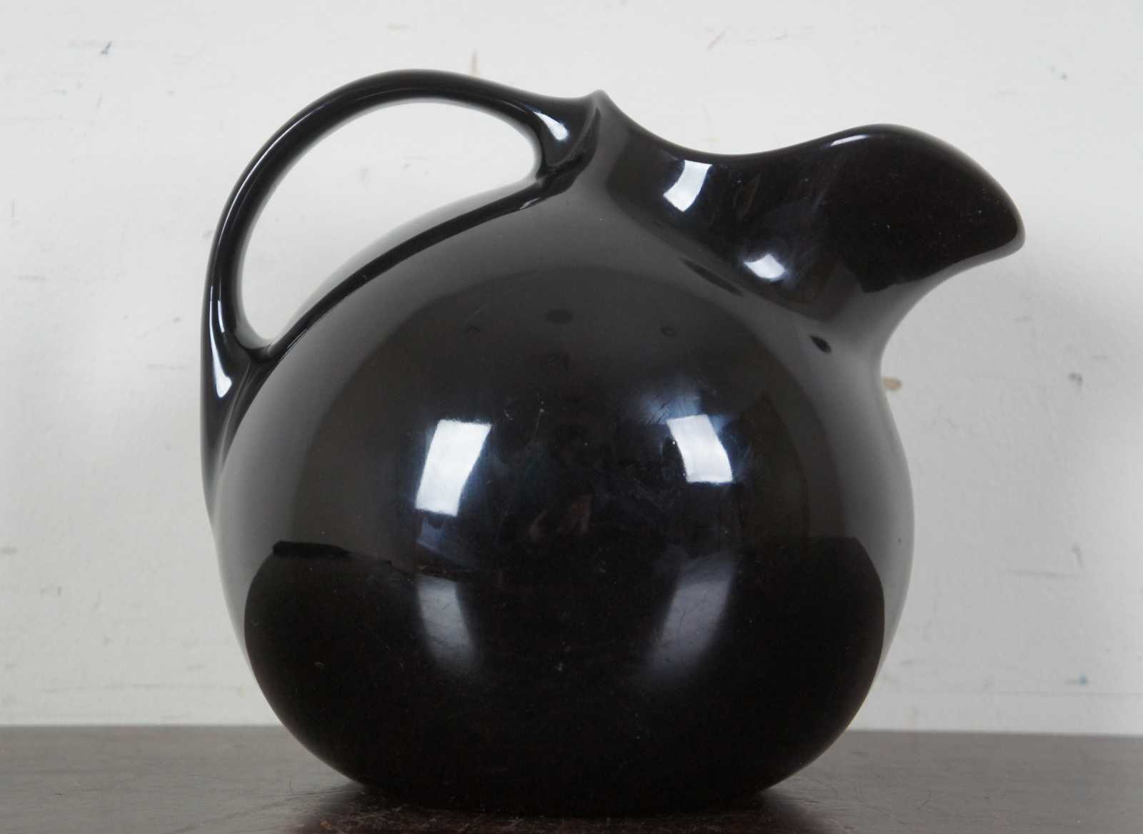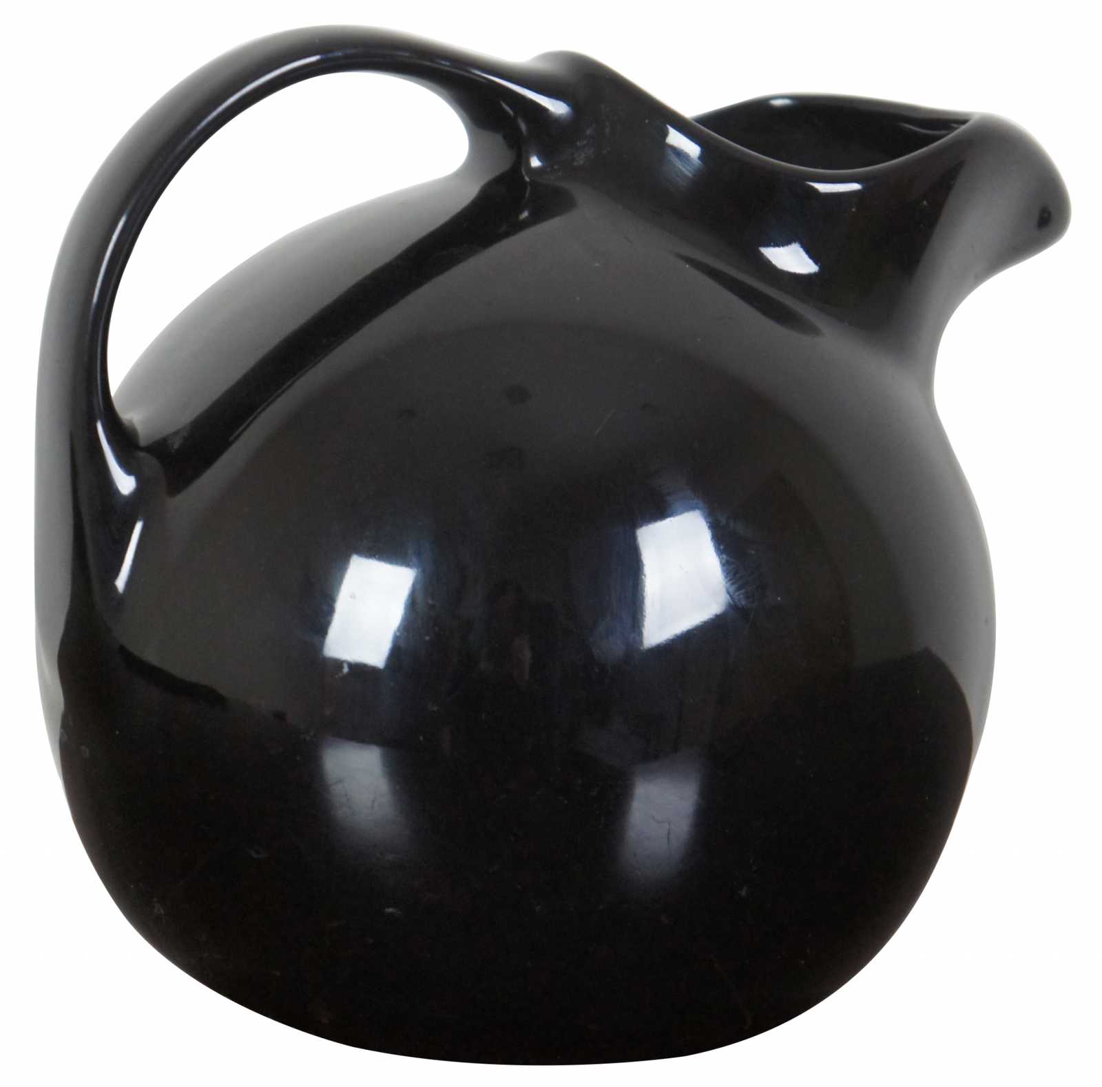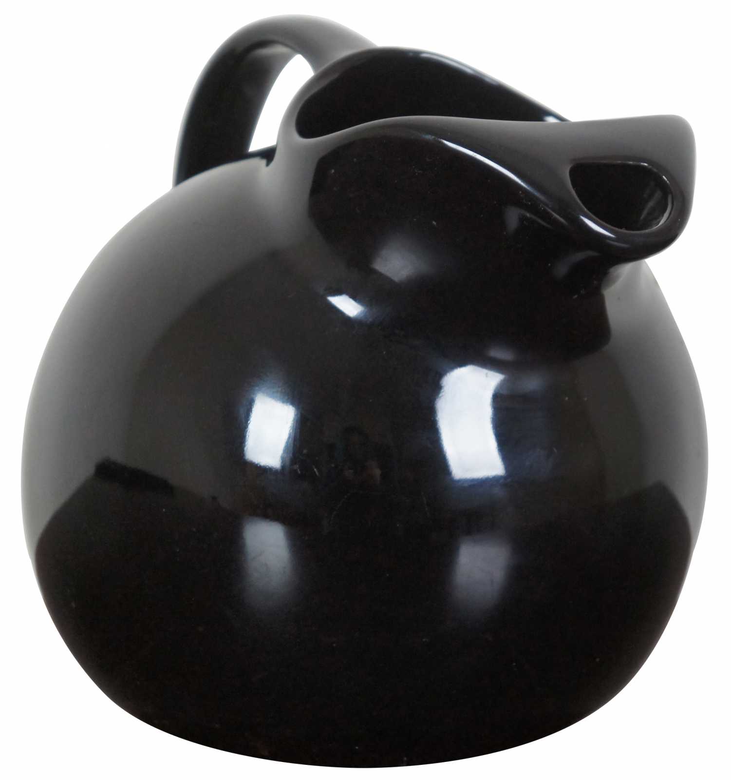Vintage Hall Pottery Modern Black Ball Water Juice Pitcher w/ Ice Lip 633 MCM 9"