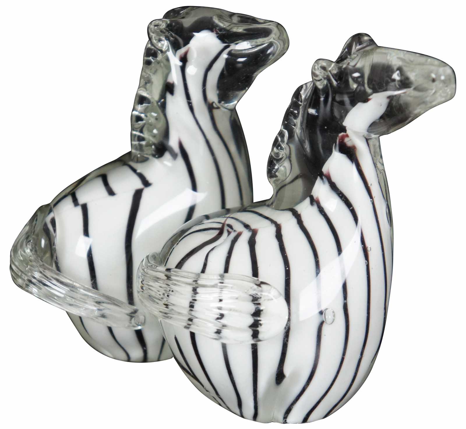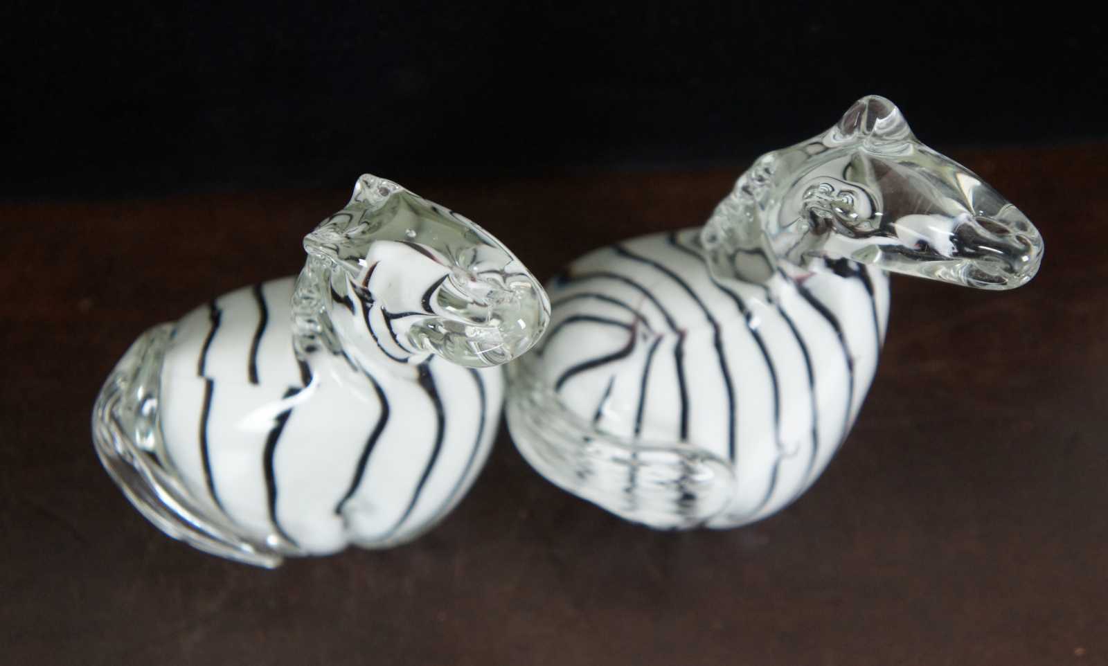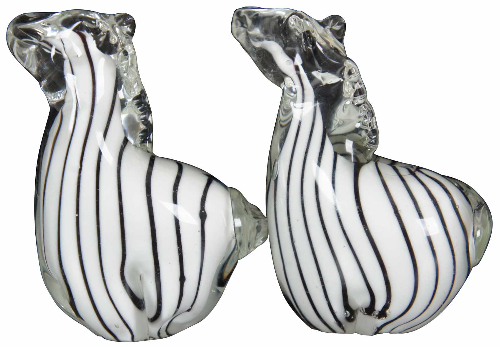 Pair of vintage Murano studio art glass black and white striped zebra figurines.