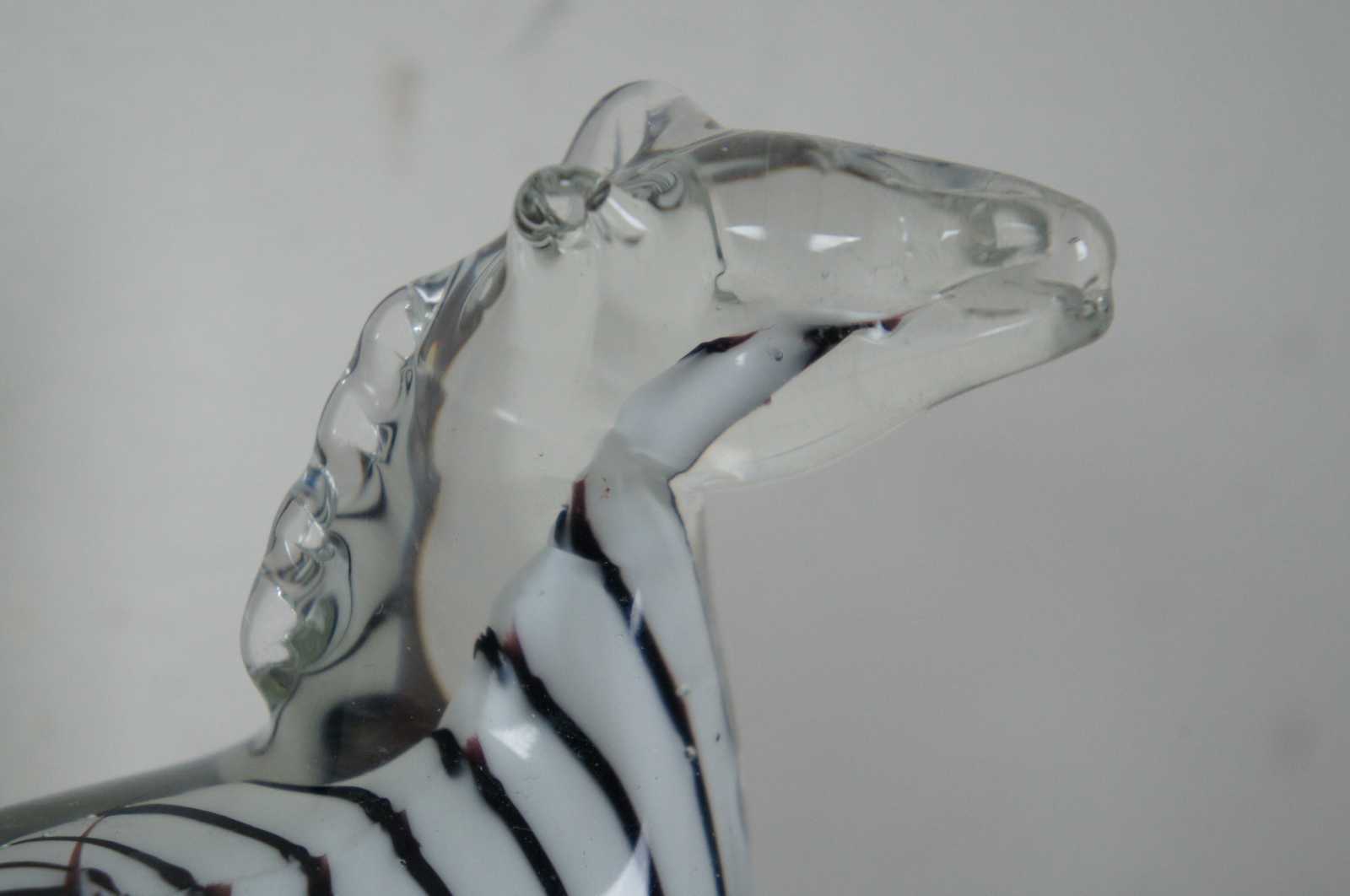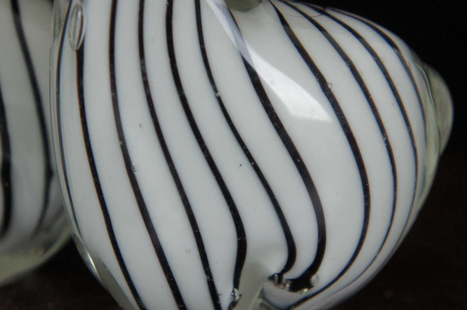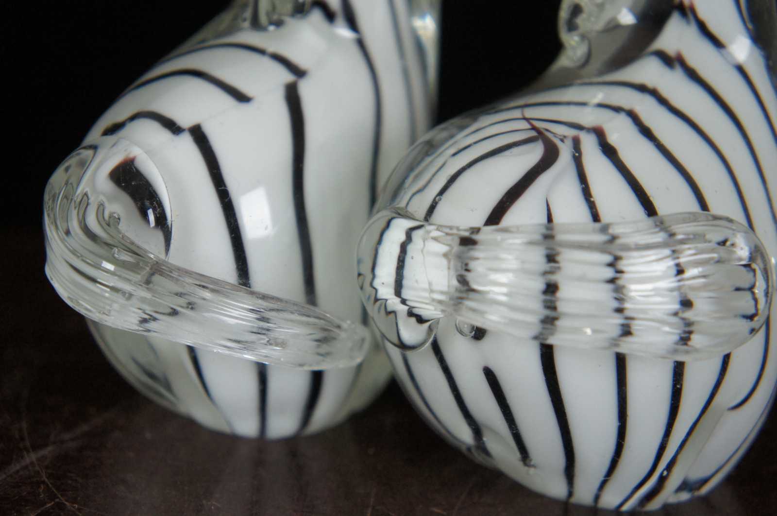 Pair of vintage Murano studio art glass black and white striped zebra figurines.