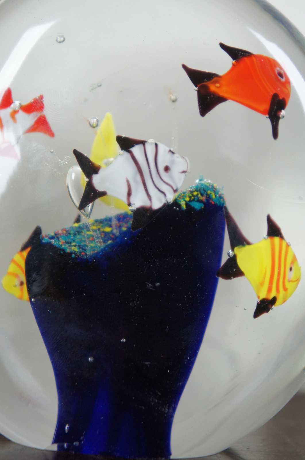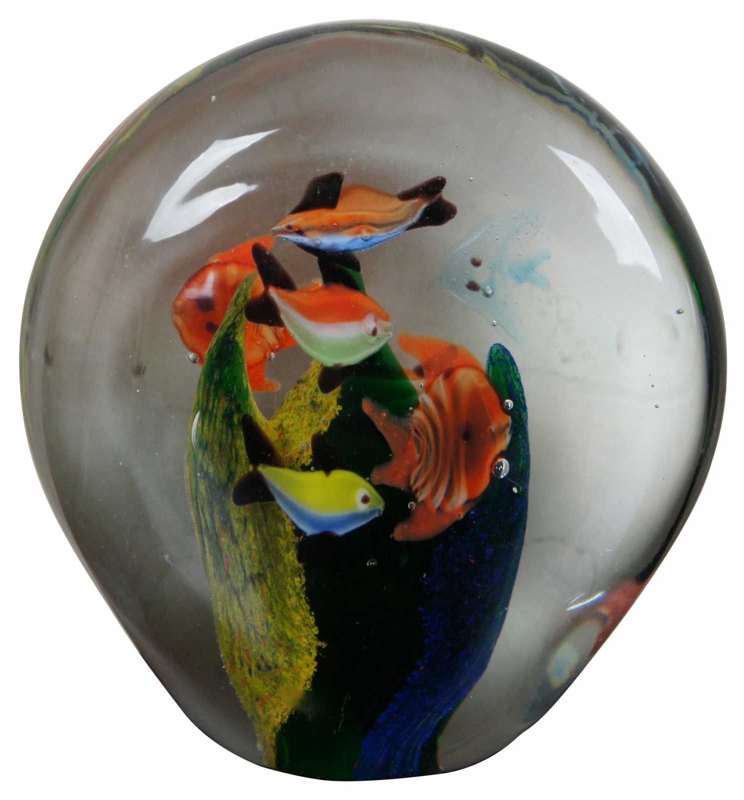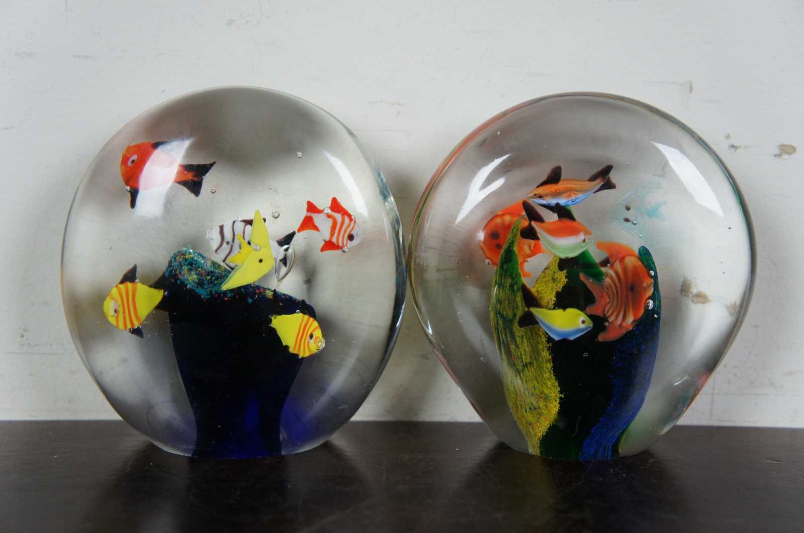 Set of two vintage Murano studio art glass fish bowl style paperweights.