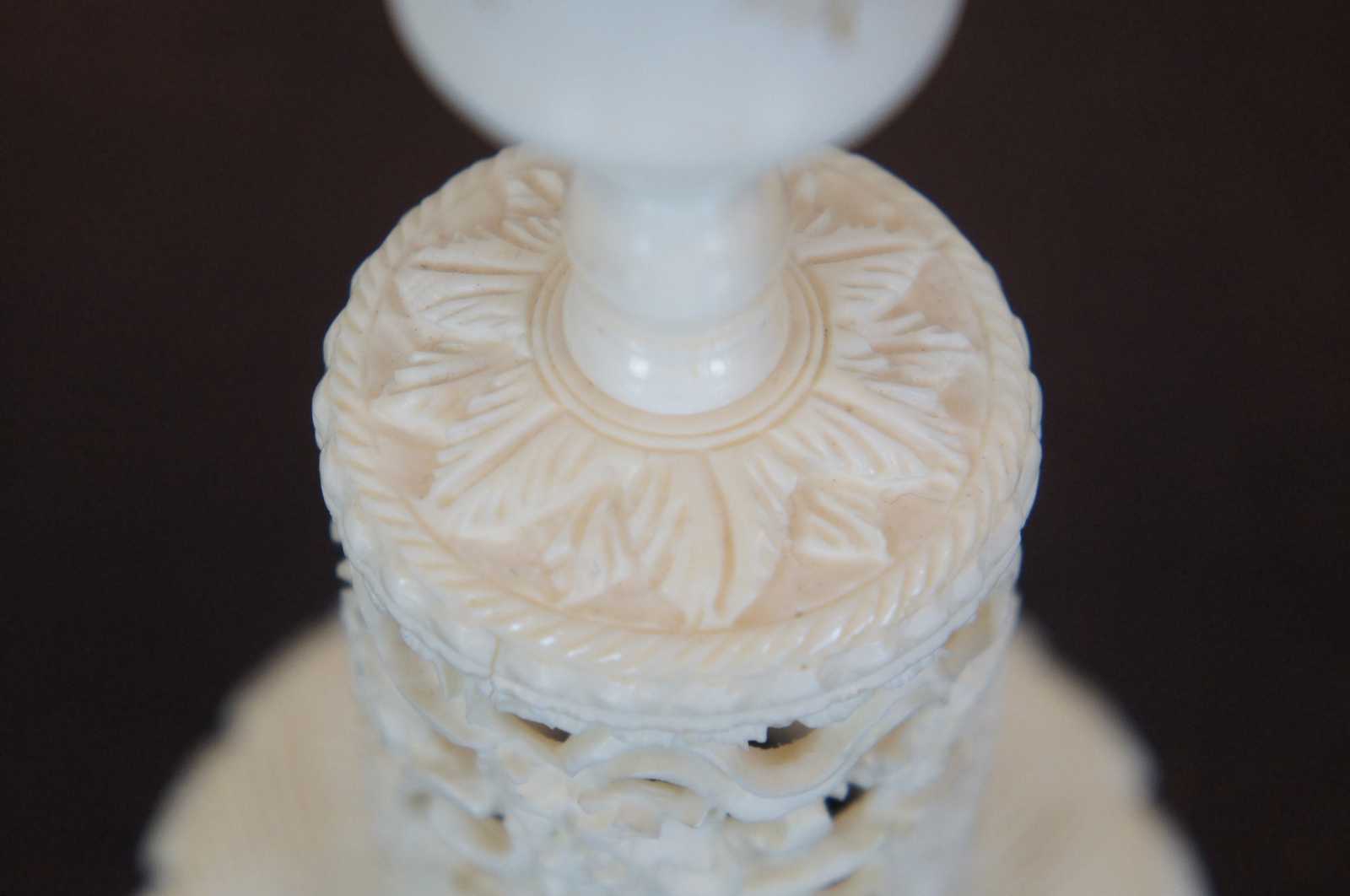 Intricately carved Chinese dragon puzzle ball within ball sculpture and stand. Eight layers.