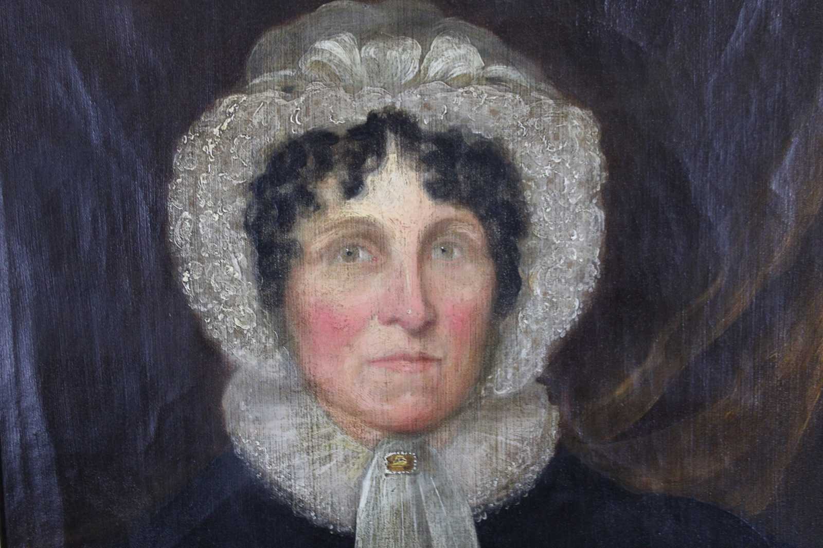 Antique 19th century late victorian portrait. Features an upper class married women seated with bonnet. Canvas unsigned. Framed in wood with gold trim.