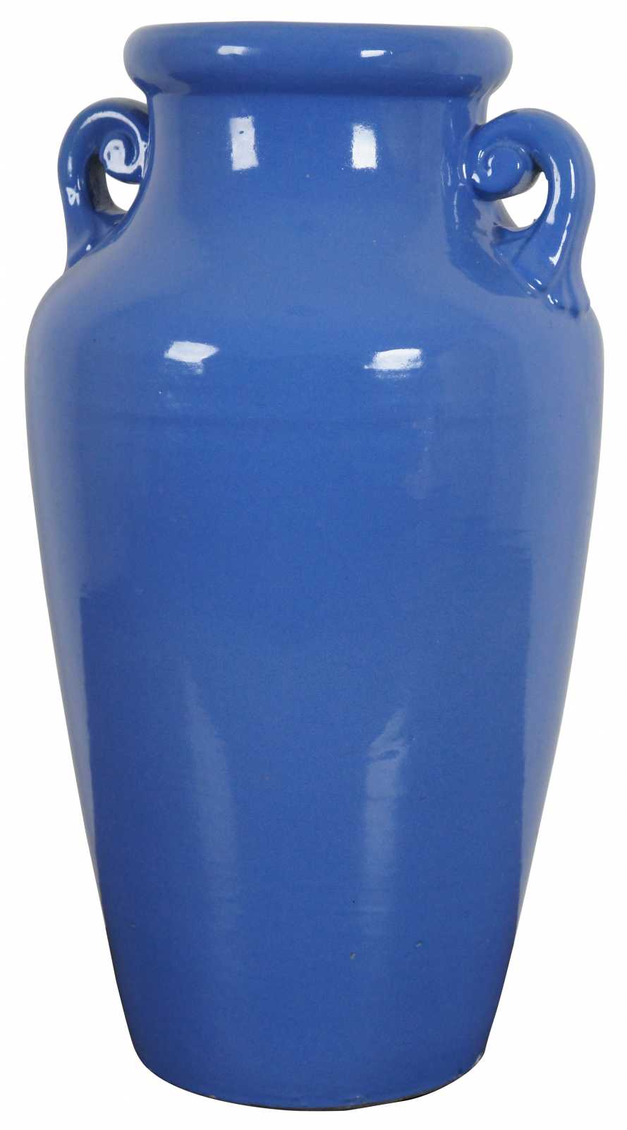 Vintage blue glazed floor vase 150 by Robinson Ransbottom with small scrolled handles.
