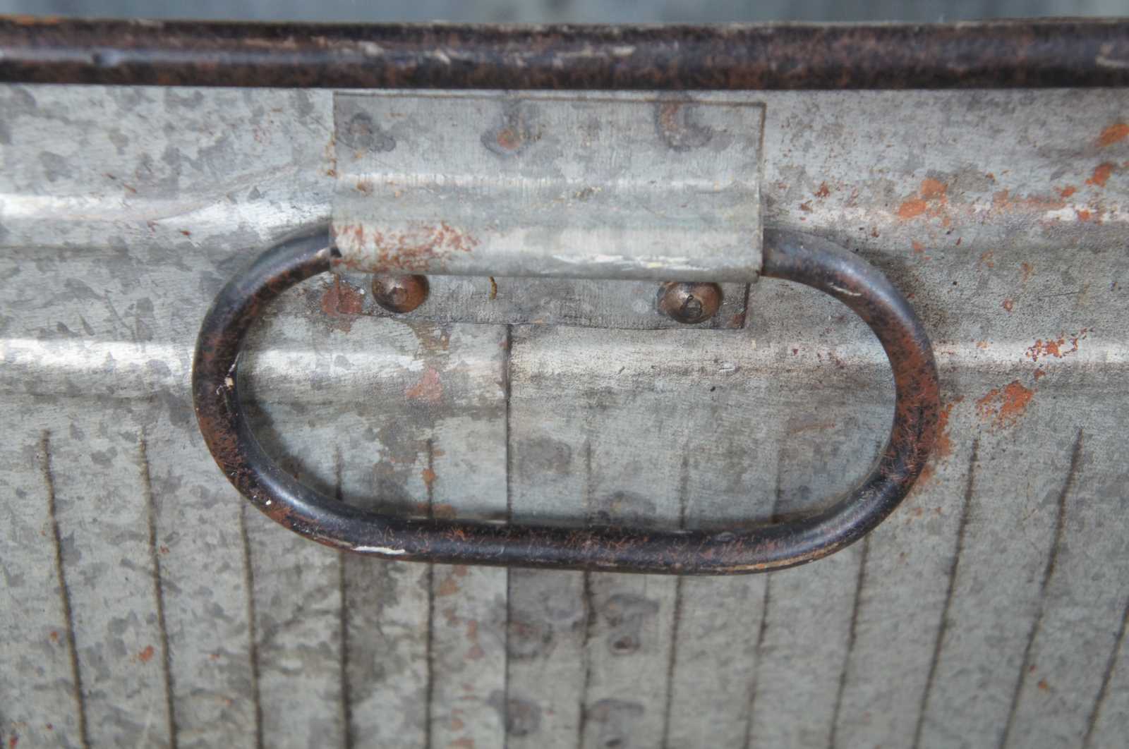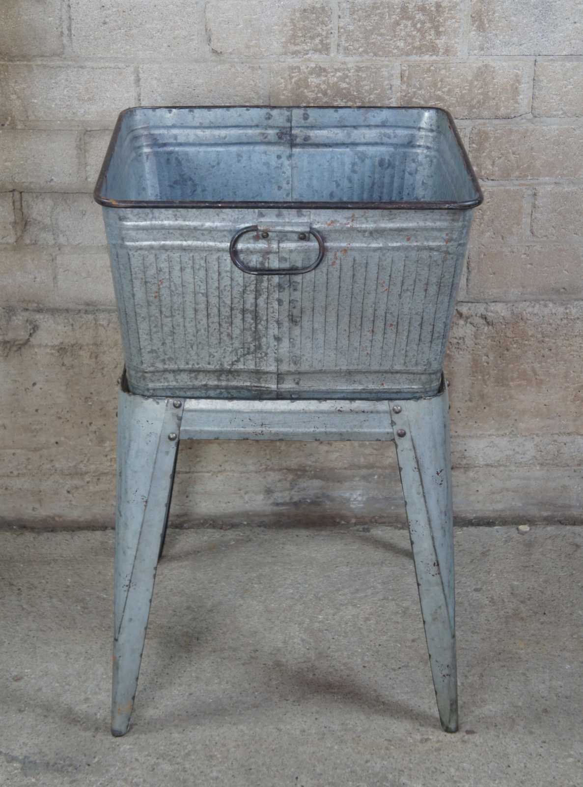 Vintage galvanized metal wash basin or beverage tub. Features an upper bucket with handles over tapered base.