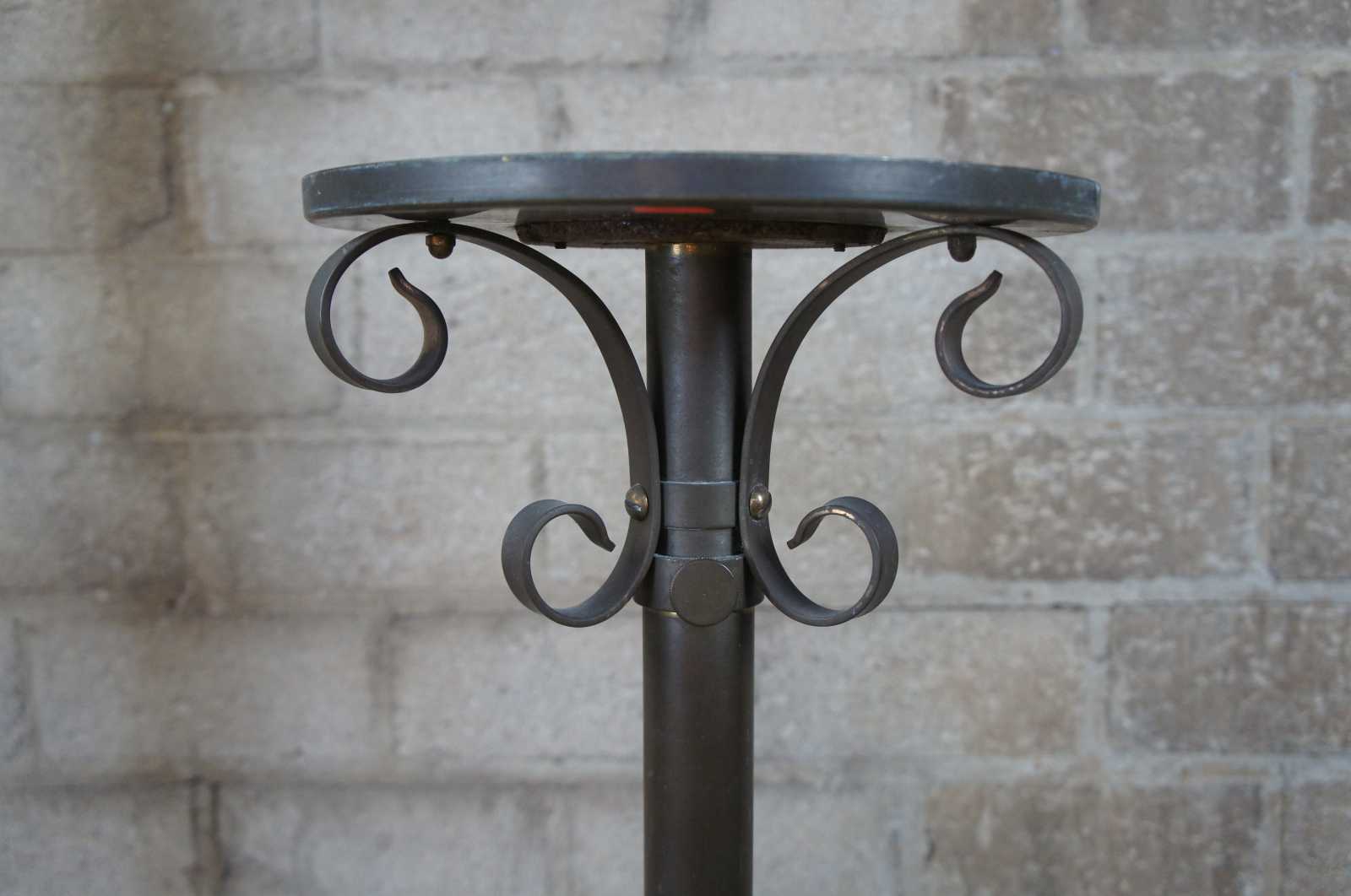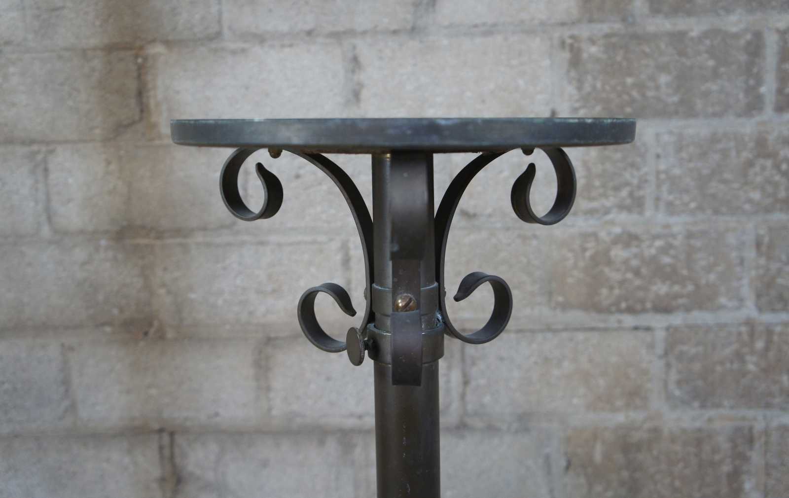 Vintage adjustable telescoping candle holder or plant stand. Made of iron featuring scrolled accents.